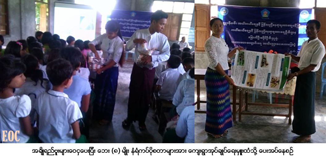 ကယ်ဆယ်ရေးနှင့်ပြန်လည်နေရာချထားရေးဦးစီးဌာန၊ မြောက်ဦးခရိုင်ဦးစီးမှူးရုံးမှ တာဝန်ရှိသူများ သည် (၂၅-၆-၂၀၁၇) ရက်နေ့တွင် မင်းပြားမြို့နယ် ပြားချောင်းကျေးရွာအုပ်စု ပြားချောင်း ကျေးရွာ အခြေခံ ပညာအထက်တန်းကျောင်းခွဲတွင် သဘာဝဘေးလျော့ပါးရေးအသိပညာပေးဟောပြောပွဲ ကျင်းပပြုလုပ်ခဲ့ရာ ကျောင်းသူ/သားများနှင့် ကျေးရွာသူ/သားများ စုစုပေါင်း (၂၀၀) ဦးတက်ရောက်ခဲ့ပြီး တက်ရောက်လာ သူများအား သဘာဝဘေးနှင့်ပတ်သက်၍ ဆောင်ရန်/ရှောင်ရန်များကို ရှင်းလင်းဟောပြောခြင်း၊ ဘေး (၈) မျိုးပါ လက်ကမ်းစာစောင်များနှင့် အချိုရည်ဗူးများဖြန့်ဝေခြင်းနှင့် ဘေး (၈) မျိုး နံရံကပ်ပိုစတာ (၅) စုံကို ကျေးရွာ အုပ်ချုပ်ရေးမှူးထံသို့ လွှဲပြောင်းပေးအပ်ခြင်းများကိုဆောင်ရွက်ခဲ့ပါကြောင်း သတင်းရရှိပါသည်။