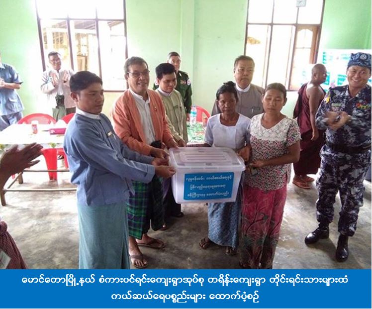 (၂၈-၆-၂၀၁၇) ရက်နေ့တွင် ရခိုင်ပြည်နယ်ဝန်ကြီးချုပ်၏ မောင်တောခရီးစဉ်အတွင်း မောင်တောခရိုင်ဦးစီးမှူးရုံး (ကဆရ) မှ တာဝန်ရှိသူများသည် မောင်တောမြို့နယ် စံကားပင်ရင်းကျေးရွာအုပ်စု တရိန်းကျေးရွာ တိုင်းရင်းသားများအတွက် ကယ်ဆယ်ရေပစ္စည်း (၁၀) မျိုး (၈၇) အိမ်ထောင်စာအား ထောက်ပံ့ပေးခဲ့ကြောင်း သိရှိရပါသည်။