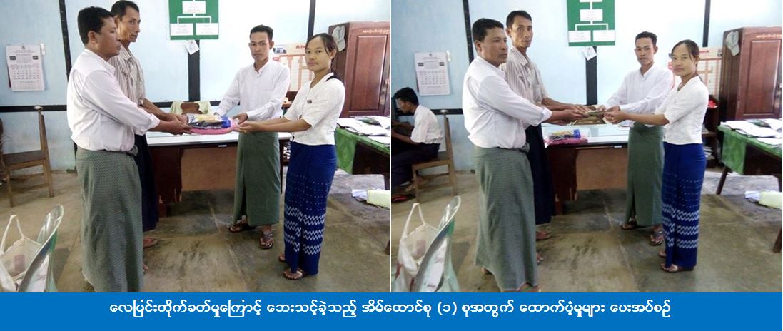 (၂၈-၆-၂၀၁၇) ရက်နေ့တွင် ဟင်္သာတခရိုင်ဦးစီးမှူးရုံး (ကဆရ) မှ တာဝန်ရှိသူများသည် ဟင်္သာတမြို့၊ တောင်လုံးစုအုပ်စု၊ တောင်လုံးစုရွာ၌ (၂၁-၆-၂၀၁၇) ရက်နေ့တွင် လေပြင်းတိုက်ခတ်မှုကြောင့် ဘေးသင့်ခဲ့သည့် အိမ်ထောင်စု (၁) စုအတွက် အိမ်ဆောက်ပစ္စည်းဖိုး (၉၀၀၀၀) ကျပ်၊ ဆန်ရိက္ခာဖိုး (၆၃၀၀) ကျပ်နှင့် ကယ်ဆယ်ရေးပစ္စည်း (၄) မျိုးတို့ကို ထောက်ပံ့ပေးခဲ့ကြောင်း သိရှိရပါသည်။