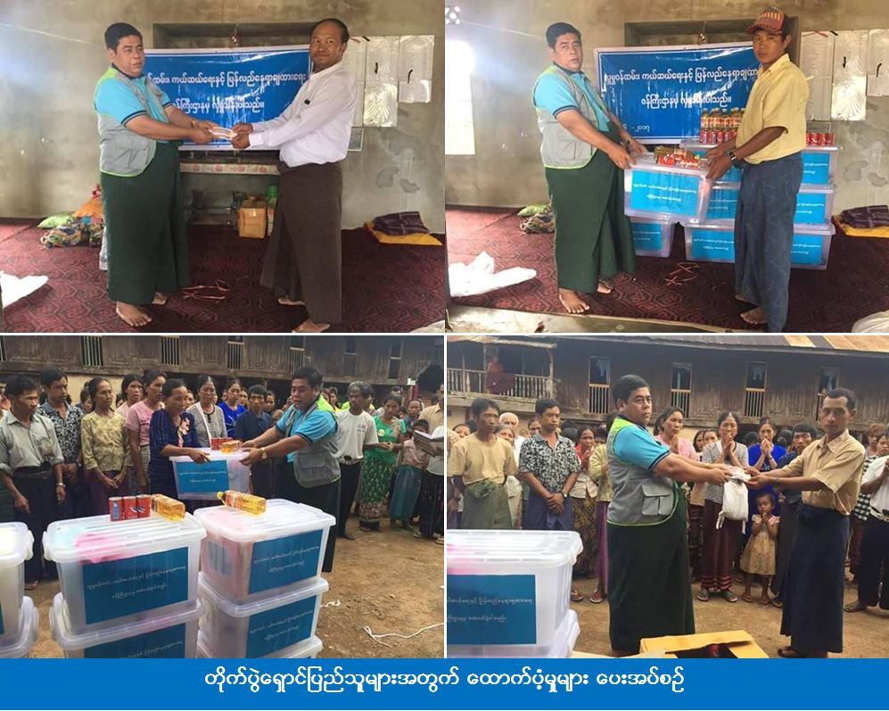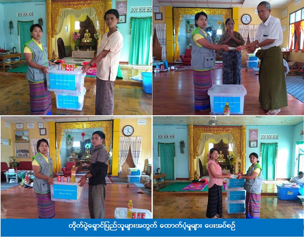 (၂၈-၆-၂၀၁၇) ရက်နေ့တွင် နမ့်ဆန်မြို့နယ်၊ နမ့်လင်းခမ်းအုပ်စု၊ မန်လန်းရွာမှ လားရှိုးမြို့နယ်၊ ရပ်ကွက် (၉) အောင်မင်္ဂလာ နမ့်ဆန်ကျောင်း၊ သာသနာ ၂၅၀၀ ဘုန်းတော်ကြီးကျောင်း၊ ခေးနင်းကျေးရွာဘုန်းကြီးကျောင်းနှင့် လွယ်လွမ့်ကျေးရွာဘုန်းကြီးကျောင်းများသို့ ရောက်ရှိလာသော တိုက်ပွဲရှောင်အိမ်ထောင်စု (၄၉) စုမှ ကျား (၆၁) ဦး၊ မ (၇၂) ဦး စုစုပေါင်း (၁၃၃) ဦးတို့အား ကယ်ဆယ်ရေးနှင့် ပြန်လည်နေရာချထားရေးဦးစီးဌာန၊ လားရှိုးခရိုင်ဦးစီးမှူးရုံးမှ တာဝန်ရှိသူများသည် (၃၀-၆-၂၀၁၇) ရက်နေ့၊ (၁၆းဝ၀) နာရီတွင် ဆန်ရိက္ခာ(၇)ရက်စာ တန်ဖိုးငွေ (၂၇၉၃၀၀) ကျပ်၊ တစ်အိမ်ထောင်လျှင် ဆီ (၅၀)သား (၉၈၀၀၀) ကျပ်၊ ငါးသေတ္တာ ၃ ဘူး (၅၁၄၅၀) ကျပ်နှင့် ပလပ်စတစ်ပုံးပါ ကယ်ဆယ်ရေးပစ္စည်း (၁၀) မျိုးတို့အား ထောက်ပံ့ပေးခဲ့ကြောင်း သိရှိရပါသည်။