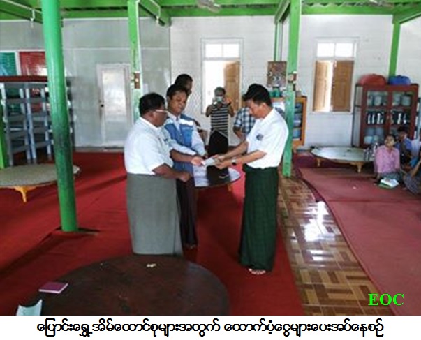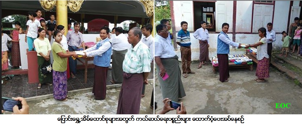လူမှုဝန်ထမ်း၊ ကယ်ဆယ်ရေးနှင့်ပြန်လည်နေရာချထားရေးဝန်ကြီးဌာန၊ ကယ်ဆယ်ရေးနှင့်ပြန်လည်နေရာချထားရေးဦးစီးဌာန၊ ခန္တီးခရိုင်ဦးစီးမှူး ရုံးမှ တာဝန်ရှိသူများသည် ၂၀၁၇ ခုနှစ်၊ ဇူလိုင်လအတွင်း ချင်းတွင်းမြစ်ရေကြီးမှုကြောင့် (၅-၇-၂၀၁၇) ရက်နေ့တွင် ပြောင်းရွှေ့ခဲ့ရသော အိမ်ထောင်စု (၁၇၀) စုမှ လူဦးရေ စုစုပေါင်း (၈၃၄) ဦးတို့အတွက် ကယ်ဆယ်ရေးပစ္စည်း (၅) မျိုး (၁၇၀) အိမ်ထောင်စာနှင့် ဆန်ရိက္ခာဖိုး ထောက်ပံ့ငွေ (၁၇၅၁၄၀၀/-) ကျပ်တို့အား မြို့နယ်စီမံခန့်ခွဲမှုကော်မတီရုံးခန်းတွင်လည်းကောင်း၊ မြသိန်းတန်ဘုန်းကြီးကျောင်း၊ ပေါမိုင်းဘုန်းကြီးကျောင်း နှင့် ဇီးဖြူကုန်းစာသင်ကျောင်းတို့တွင်လည်းကောင်း (၆-၇-၂၀၁၇) ရက်နေ့၌ သွားရောက်ထောက်ပံ့ခဲ့ကြောင်း သတင်းရရှိပါသည်။