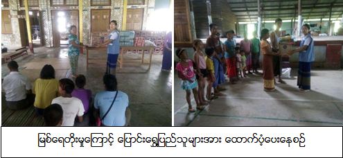 (၅.၇.၂၀၁၇)ရက်နေ့တွင် မော်လိုက်မြို့နယ်အတွင်း ချင်းတွင်းမြစ်ရေဝင်ရောက်မှုကြောင့် ပြောင်းရွေ့အိမ်ထောင်စုု (၂၁) စု အတွက် ကယ်ဆယ်ရေးပစ္စည်း (၅) မျိုးနှင့် လူဦးရေ(၁၀၀)ဦးအတွက် ဆန်ရိက္ခာဖိုးထောက်ပံ့ငွေ ခုနှစ်ရက်စာ (၂၁၀၀၀၀) ကျပ်၊ ရေဘေးရှောင်စခန်း မြို့မကျောင်းတိုက်နှင့် အားကာခန်းမတွင် မော်လိုက်မြို့စီမံခန့်ခွဲမှု ကော်မတီဝင်များနှင့် ကယ်ဆယ်ရေးရုံးမှ တာဝန်ရှိသူများ (၆.၇.၂၀၁၇)နေ့တွင် ထောက်ပံ့ပေးအပ်ခဲ့ပြီး မြို့နယ်စီမံခန့်ခွဲမှုကော်မတီဝင်များမှ ခေါက်ဆွဲခြောက်၊ ရေသန့်၊ ကြက်ဥ၊ ငါးသေတ္တာများ ထောက်ပံ့ပေးခဲ့ကြောင်း သတင်းရရှိပါသည်။