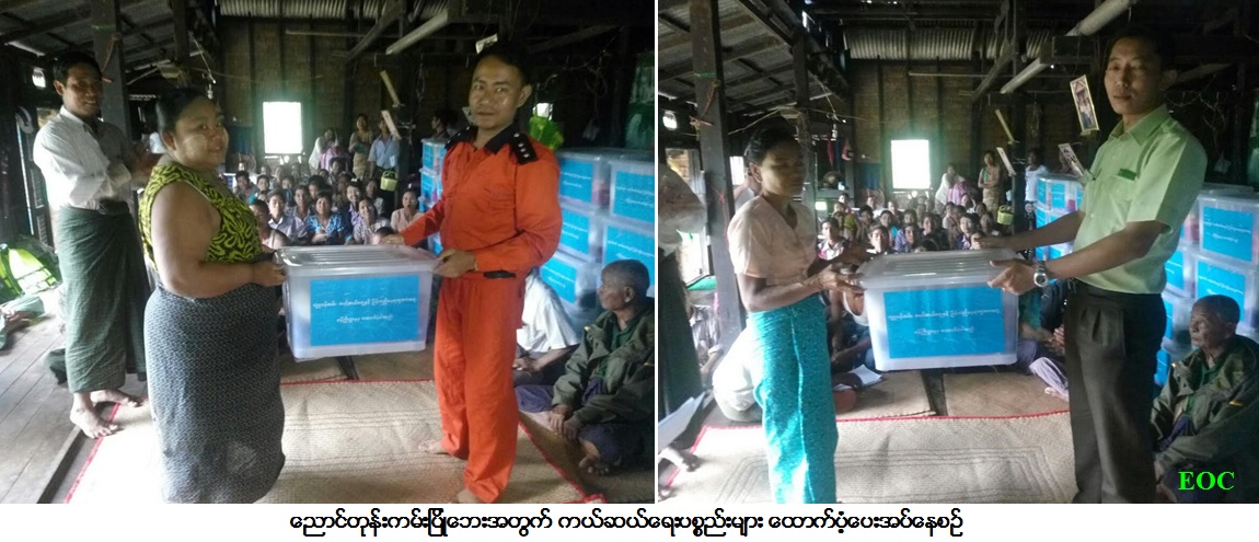 လူမှုဝန်ထမ်း၊ ကယ်ဆယ်ရေးနှင့်ပြန်လည်နေရာချထားရေးဝန်ကြီးဌာန၊ ကယ်ဆယ်ရေးနှင့်ပြန်လည်နေရာချထားရေးဦးစီးဌာန၊ ဧရာဝတီတိုင်း ဒေသကြီးဦးစီးမှူးရုံးမှ တာဝန်ရှိသူများသည် ဧရာဝတီတိုင်းဒေသကြီး၊ မအူပင်ခရိုင်၊ ညောင်တုန်းမြို့နယ်၊ မြမ္မာပြာသာကျေးရွာအုပ်စု၊ ရွာသာကြီး ကျေးရွာတွင် (၇-၇-၂၀၁၇) ရက်နေ့နှင့် (၉-၇-၂၀၁၇) ရက်နေ့များ၌ ဖြစ်ပွားခဲ့သော ကမ်းပြိုဘေးကြောင့် ဘေးလွတ်ရာသို့ရွှေ့ပြောင်းခဲ့ရသည့် နေအိမ် (၄၁) လုံး၊ အိမ်ထောင်စု (၄၁) စုမှ လူဦးရေ (၁၆၁) ဦးအတွက် ကယ်ဆယ်ရေးပစ္စည်း (၁၀) မျိုး (၄၁) ပုံး၊ အိမ်ဆောက်ပစ္စည်းဖိုးငွေ (၄၁၀၀၀၀၀/-) ကျပ်၊ ဆန်ရိက္ခာ (၇) ရက်စာ (၃၃၈၁၀၀/-) ကျပ်၊ စုစုပေါင်းရန်ပုံငွေ (၄၄၃၈၁၀၀/-) ကျပ်တို့အား မအူပင်ခရိုင်ဦးစီးမှူးရုံးမှ ခရိုင်ဦးစီးမှူးတို့နှင့်အတူ ကမ်းပြိုဘေးသင့်ပြည်သူများလက်ဝယ်သို့ (၁၀-၇-၂၀၁၇) ရက်နေ့တွင် ကွင်းဆင်းထောက်ပံ့ပေးအပ်ခဲ့ပါကြောင်း သတင်းရရှိပါသည်။