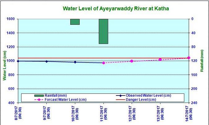 ယနေ့မြန်မာစံတော်ချိန် (၁၀:၃၀)နာရီအချိန် တိုင်းထွာချက်အရ ဧရာဝတီမြစ်ရေသည် ကသာမြို့တွင် ယင်းမြို့၏ စိုးရိမ်ရေမှတ်အောက် (၂)ပေခွဲခန့်တွင် ရောက်ရှိနေပါသည်။ အဆိုပါ မြစ်ရေသည် နောက် (၃)ရက်အတွင်း ယင်းမြို့၏ စိုးရိမ်ရေမှတ်သို့ ရောက်ရှိနိုင်ပါသည်။