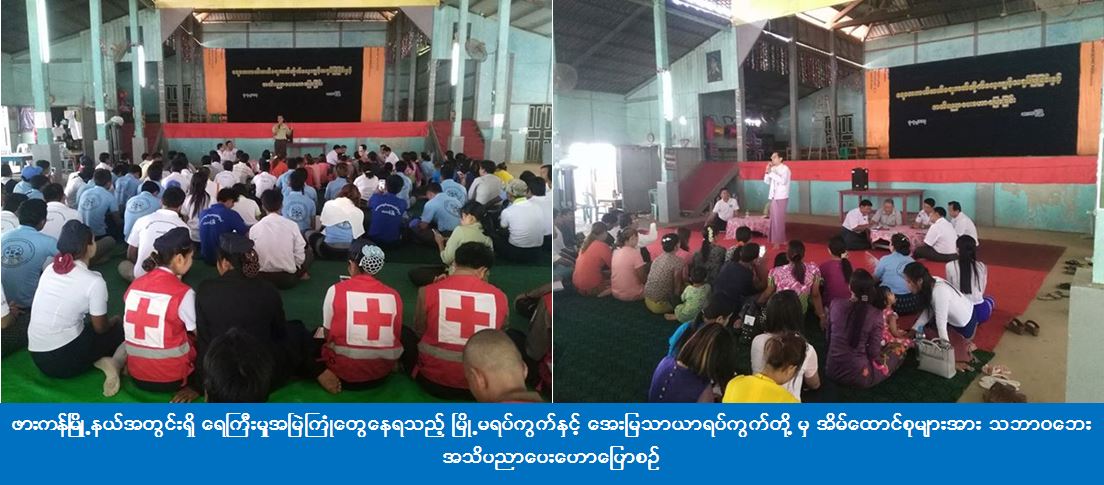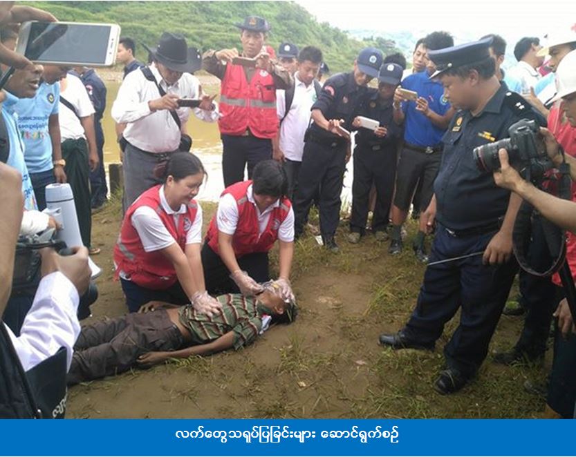 ကယ်ဆယ်ရေးနှင့် ပြန်လည်နေရာချထားရေးဦးစီဌာန၊ ကချင်ပြည်နယ်ဦးစီးမှူးရုံးနှင့် ဖားကန့့်မြို့နယ် သဘာဝဘေးအန္တရာယ်ဆိုင်ရာစီမံခန့်ခွဲမှုအဖွဲ့တို့ပူးပေါင်း၍ (၇-၇-၂၀၁၇) ရက်နေ့၊ (၀၉းဝ၀) နာရီအချိန်တွင် ရေကြီးမှုအမြဲကြုံတွေ့နေရသည့် ဖားကန့်မြို့နယ်၊ မြို့မရပ်ကွက်နှင့် အေးမြသာယာရပ်ကွက်တို့မှ အိမ်ထောင်စုများအား ဘေးလွတ်ရာအောင်ဇေယျုံဘုန်းတော်ကြီးကျောင်းသို့ ပြောင်းရွှေ့နေရာချထားပေးခဲ့ပြီး သဘာဝဘေးအသိပညာပေးဟောပြောခြင်းကို ပြည်နယ်ကယ်ဆယ်ရေးဌာနနှင့် မြို့နယ်ကျန်းမာရေးဦးစီးဌာနတို့မှ တာဝန်ရှိသူများက ဆွေးနွေးဟောပြောခဲ့ကြပါသည်။ ဆက်လက်၍ ရေပြင်အသက်ကယ်ရှာဖွေကယ်ဆယ်ရေးသရုပ်ပြခြင်းအခမ်းအနားကို ဖားကန့်မြို့နယ်၊ အေးမြသာယာရပ်ကွက်ဥရုချောင်းတွင် ကျင်းပရာ မြို့နယ်သဘာဝဘေးအန္တရာယ်ဆိုင်ရာစီမံခန့်ခွဲမှုအဖွဲ့နှင့် ရှာဖွေကယ်ဆယ်ရေးအဖွဲ့တို့မှ တာဝန်ရှိသူများက လက်တွေ့သရုပ်ပြခြင်းများ ဆောင်ရွက်ခဲ့ကြောင်း သိရှိရပါသည်။