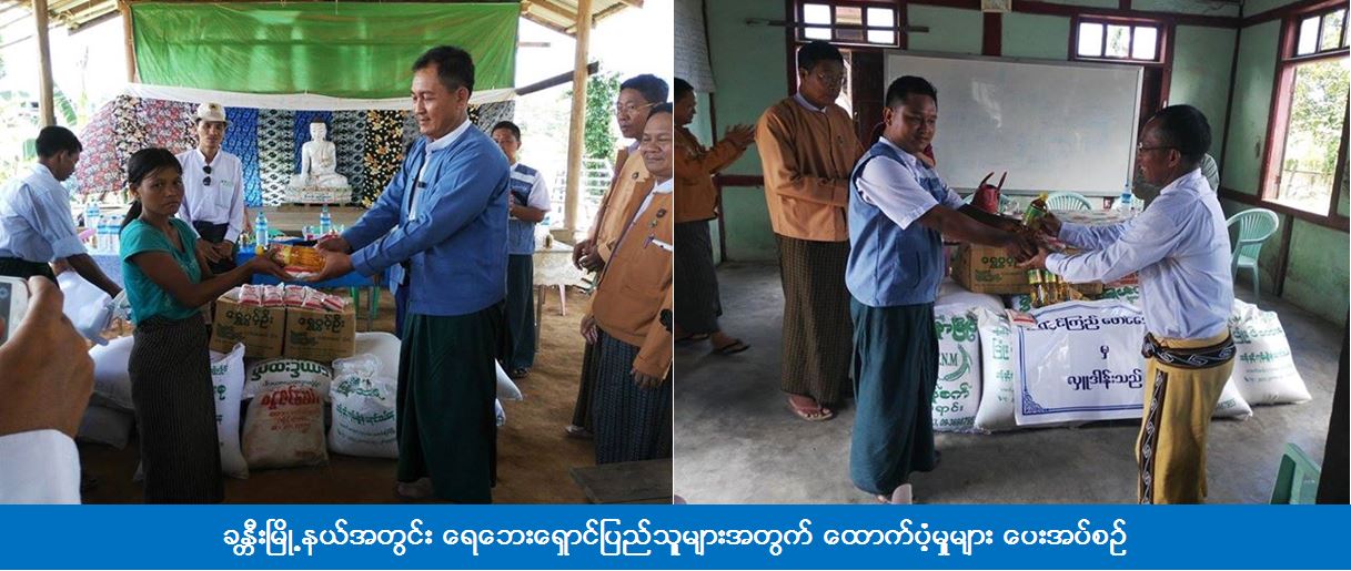 ခန္တီးမြို့နယ်အတွင်း ၂၀၁၇ ခုနှစ် ဇူလိုင်လရေကြီးမှုကြောင့် ရေလွတ်ရာသို့ ပြောင်းရွှေကြရသော ကျေးရွာ (၂၀) မှ အိမ်ထောင်စု (၂၃၄) စုအတွက် အိမ်ထောင်စု (၁) စုလျှင် စစ်ကိုင်းတိုင်းဒေသကြီးအစိုးရအဖွဲ့မှ (၁၀၀၀၀) ကျပ်နှုန်း၊ ဒေါ်ခင်ကြည်ဖောင်ဒေးရှင်းမှ ဆန် ၅ ပြည်နှုန်း၊ NLD ပါတီမှ ဆန် ၂ ပြည်၊ ခေါက်ဆွဲခြောက် ၂ ထုပ်စီနှင့် ကယ်ဆယ်ရေးနှင့် ပြန်လည်နေရာချထားရေးဦးစီးဌာနမှ (၄၆၈၀၀၀) ကျပ်တန်ဖိုးရှိ ဆီ ၅၀ သားနှင့် ဆား ၅၀ သားစီ၊ ကမ်းပါးပြိုကျမည်စိုးရိမ်ရသော ရွှေမြင့်မိုရ်ကျေးရွာရှိ ဦးကြည် ဒေါ်နု၏ နေအိမ် ၁ လုံးအတွက် အိမ်ဆောက်ပစ္စည်းဖိုး ထောက်ပံ့ငွေ (၁၀၀၀၀၀) ကျပ်တိတိတို့ကို တိုင်းဒေသကြီးအစိုးရအဖွဲ့မှ လယ်ယာစိုက်ပျိုးရေးနှင့်ဆည်မြောင်းဝန်ကြီး ရှမ်းတိုင်းရင်းသားရေးရာဝန်ကြီး တိုင်းဒေသကြီးလွှတ်တော်ကိုယ်စားလှယ် ခန္တီးမြို့နယ်စီမံခန့်ခွဲမှုကော်မတီဥက္ကဌနှင့်အတူ ကယ်ဆယ်ရေးနှင့် ပြန်လည်နေရာချထားရေးဦးစီးဌာနမှ စစ်ကိုင်းတိုင်းဒေသကြီးဦးစီးမှူးနှင့် တာဝန်ရှိ်သူများ လိုက်ပါလျက် (၁၆-၇-၂၀၁၇) ရက်နေ့တွင် မြို့နယ်အတွင်းရှိ ရေဘေးသင့်ကျေးရွာများသို့ သွားရောက်ထောက်ပံ့ခဲ့ကြောင်း သိရှိရပါသည်။