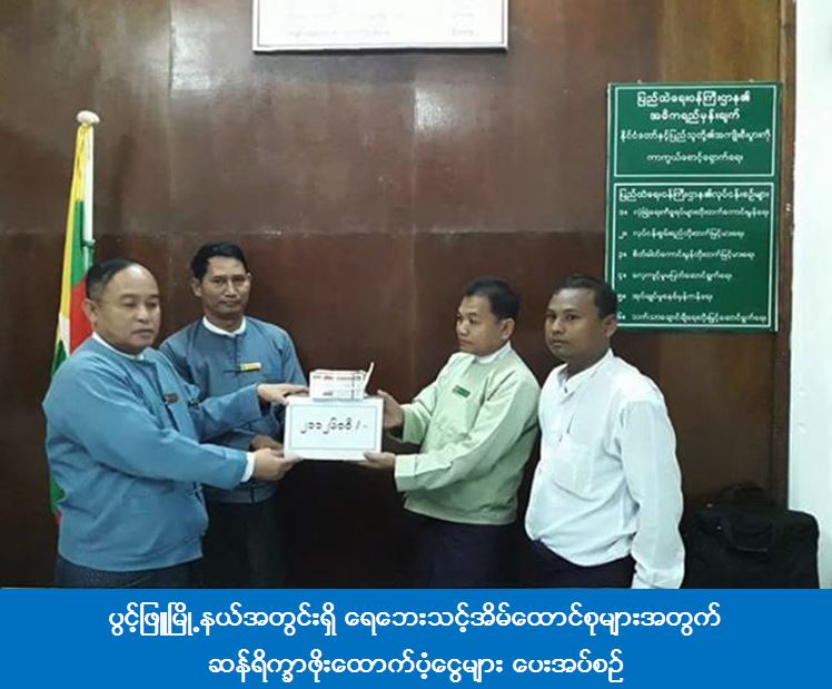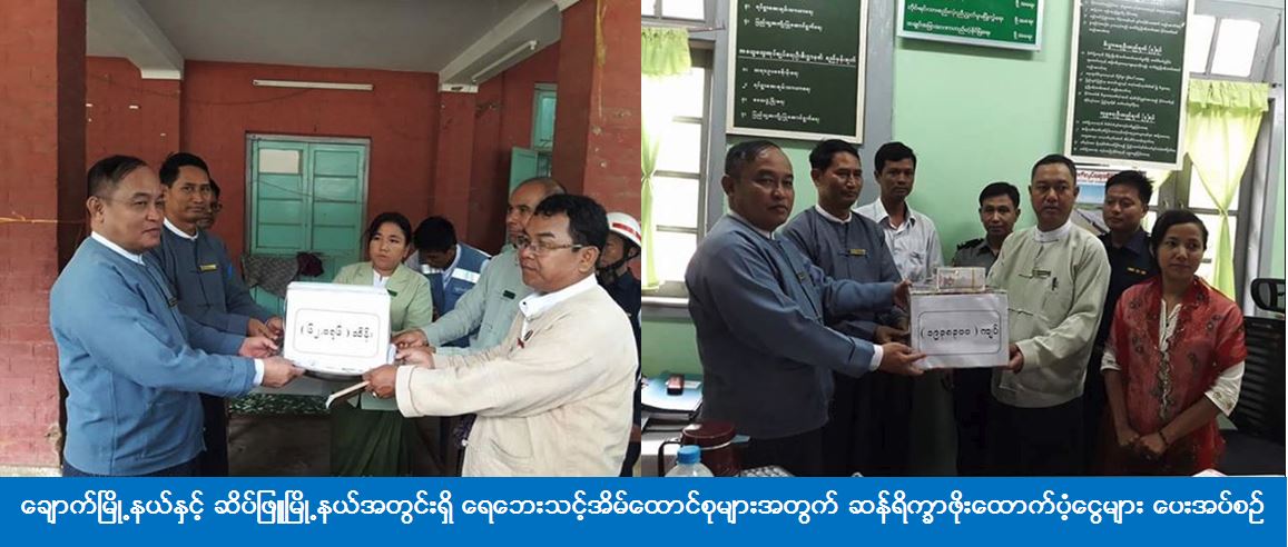 ၁၈-၇-၂၀၁၇ (အင်္ဂါနေ့) တွင် ကယ်ဆယ်ရေးနှင့် ပြန်လည်နေရာချထားရေးဦးစီးဌာန၊ ဒုတိယညွှန်ကြားရေးမှူးချုပ် ဦးဝင်းထွဋ်ဦးသည် မကွေးတိုင်းဒေသကြီးဦးစီးမှူးလိုက်ပါလျက် သက်ဆိုင်ရာဒေသများရှိ ပြည်သူ့လွှတ်တော်နှင့် အမျိုးသားလွှတ်တော်ကိုယ်စားလှယ်များ၊ တာဝန်ရှိသူများနှင့်အတူ ဧရာဝတီမြစ်ရေမြင့်တက်မှုကြောင့် မကွေးတိုင်းဒေသကြီးအတွင်း ရေဘေးဒုက္ခခံစားကြရသည့် မြို့နယ်များသို့ ၇-ရက်စာ ဆန်ရိက္ခာဖိုးငွေများ ထောက်ပ့ံပေးခဲ့ရာ ရေစကြိုမြို့နယ်ရှိ ရေဘေးသင့်အိမ်ထောင်စု (၁၅၁၄) စုမှ လူဦးရေ (၅၇၂၇) ဦးအတွက် ဆန်ရိက္ခာဖိုးငွေ (၁၂,၀၂၆,၇၀၀) ကျပ်အားလည်းကောင်း၊ ပခုက္ကူမြို့နယ်ရှိ ရေဘေးသင့်အိမ်ထောင်စု (၂၈၇၄) စုမှ လူဦးရေ (၁၁၄၄၆) ဦးအတွက် ဆန်ရိက္ခာဖိုးငွေ (၂၄,၀၃၆,၆၀၀) ကျပ်အားလည်းကောင်း၊ ချောက်မြို့နယ်ရှိ ရေဘေးသင့်အိမ်ထောင်စု (၆၉၄) စုမှ လူဦးရေ (၂၉၅၆) ဦးအတွက် ဆန်ရိက္ခာဖိုးငွေ (၆,၂၀၇,၆၀၀) ကျပ်အားလည်းကောင်း၊ ဆိပ်ဖြူမြို့နယ်ရှိ ရေဘေးသင့်အိမ်ထောင်စု (၁၉၂) စုမှ လူဦးရေ (၉၂၃) ဦးအတွက် ဆန်ရိက္ခာဖိုးငွေ (၁,၉၃၈,၃၀၀) ကျပ်နှင့် ပွင့်ဖြူမြို့နယ်ရှိ ရေဘေးသင့်အိမ်ထောင်စု (၂၆၀) စုမှ လူဦးရေ (၁၀၀၆) ဦးအတွက် ဆန်ရိက္ခာဖိုးငွေ (၂,၁၁၂,၆၀၀) ကျပ်တို့အားလည်းကောင်း (၁၈-၇-၂၀၁၇) ရက်နေ့အတွက် စုစုပေါင်းထောက်ပ့ံငွေမှာ (၄၆,၃၂၁,၈၀၀) ကျပ်တိတိအား ထောက်ပံ့ပေးခဲ့ကြောင်း သိရှိရပါသည်။
