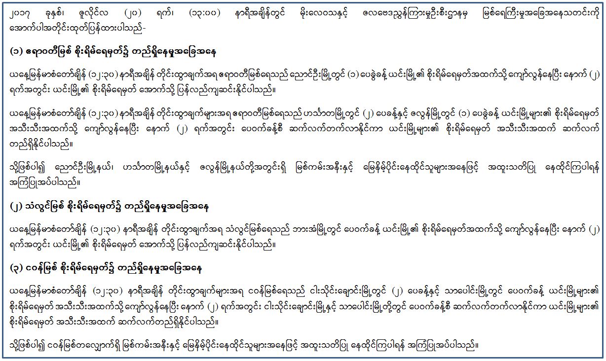 ၂၀၁၇ ခုနှစ်၊ ဇူလိုင်လ (၂၀) ရက်၊ (၁၃:၀၀) နာရီအချိန်တွင် မိုးလေဝသနှင့် ဇလဗေဒညွှန်ကြားမှုဦးစီးဌာနမှ မြစ်ရေကြီးမှုအခြေအနေသတင်းကို အောက်ပါအတိုင်းထုတ်ပြန်ထားပါသည်-