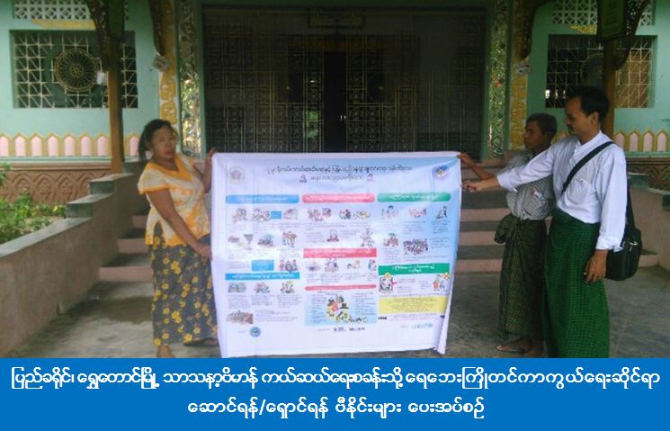 ကယ်ဆယ်ရေးနှင့် ပြန်လည်နေရာချထားရေးဦးစီးဌာန၊ ပြည်ခရိုင်ဦးစီးမှူးရုံးမှ တာဝန်ရှိသူများသည် (၂၀-၇-၂၀၁၇) ရက်နေ့တွင် ပဲခူးတိုင်းဒေသကြီး၊ ပြည်ခရိုင်၊ ရွှေတောင်မြို့ သာသနာ့ဗိမာန် ကယ်ဆယ်ရေးစခန်းသို့ ရေဘေးကြိုတင်ကာကွယ်ရေးဆိုင်ရာ ဆောင်ရန်/ရှောင်ရန် ဗီနိုင်းပိုများ ပေးအပ်ခဲ့ကြောင်း သိရှိရပါသည်။