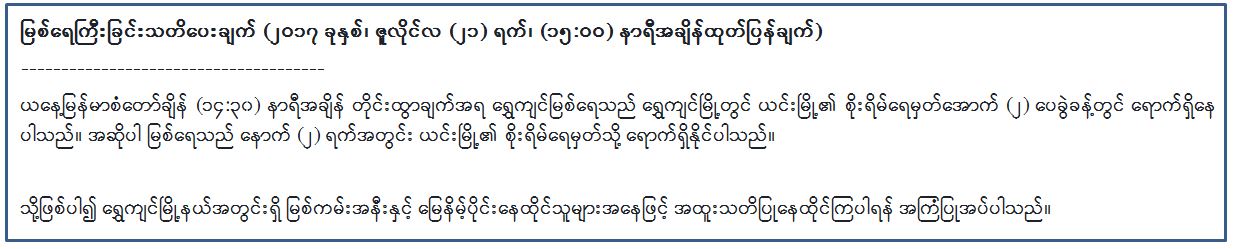 မြစ်ရေကြီးခြင်းသတိပေးချက် (၂၀၁၇ ခုနှစ်၊ ဇူလိုင်လ (၂၁) ရက်၊ (၁၅:၀၀) နာရီအချိန်ထုတ်ပြန်ချက်)