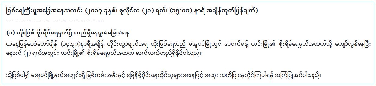 မြစ်ရေကြီးမှုအခြေအနေသတင်း (၂၀၁၇ ခုနှစ်၊ ဇူလိုင်လ (၂၁) ရက်၊ (၁၅:၀၀) နာရီ အချိန်ထုတ်ပြန်ချက်)