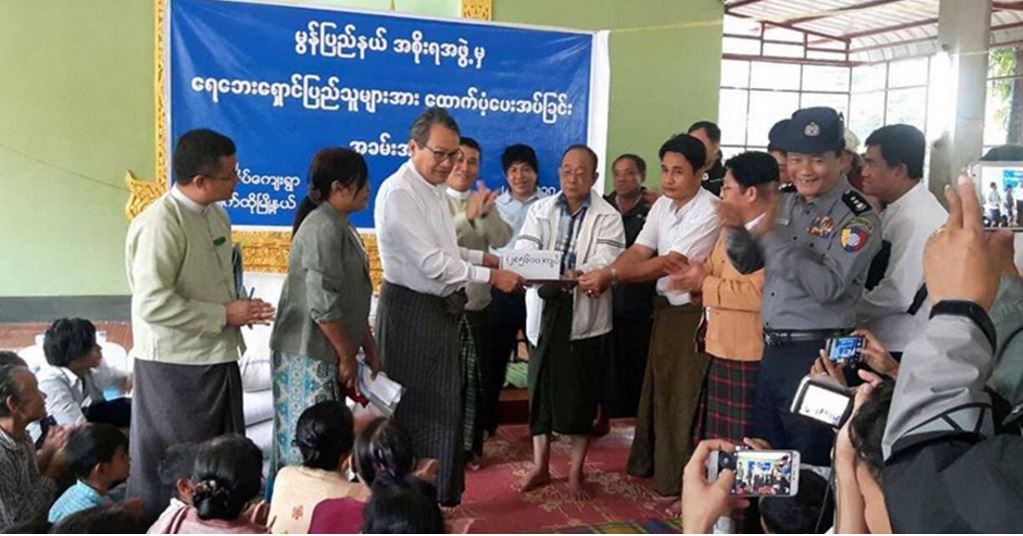 လူမှုဝန်ထမ်း၊ကယ်ဆယ်ရေးနှင့်ပြန်လည်နေရာချထားရေးဝန်ကြီးဌာန၊ကယ်ဆယ်ရေးနှင့်ပြန်လည်နေရာချထားရေးဦးစီးဌာန၊ သထုံခရိုင်ဦးစီးမှူးရုံးမှ တာဝန်ရှိသူများသည် ကျိုက်ထျိုမြို့နယ်တွင် (၂၀-၇-၂၀၁၇) ရက်နေ့မှ (၂၁-၇-၂၀၁၇) ရက်နေ့ထိ မိုးသည်းထန်စွာရွာသွန်းပြီး မြေပြိုမှုကြောင့် သိမ်ဇရပ်ကျေးရွာ၊ ရွာမရပ်ကွက်တွင် အိမ်ခြေ(၃)လုံး ပြိုကျပျက်စီးပြီး အိမ်ခြေ(၅)လုံးတစ်စိတ်ပိုင်း ပျက်ခဲ့မှုအတွက် ပြိုကျ အိမ်အတွက် ကယ်ဆယ်ရေးပစ္စည်း(၁၅)မျိုးပါ (၃)ပုံး၊ တစ်စိတ်ပိုင်းပျက်စီးမှုအ တွက် ကယ်ဆယ်ရေးပစ္စည်း(၇)မျိုးပါ (၅)ပုံး ၊ အိမ်ဆောက်ပစ္စည်းဖိုးငွေ(၁၀၀၀၀၀၀)၊ ဒဏ်လူရာရ သူတစ်ဦးအတွက် (၅၀၀၀၀)လူဦးရေ (၃၅ ) ဦးအတွက် ဆန်(၇)ရက်စာ (၇၃၅၀၀)၊ မုပ္ပလင်ကျေးရွာ ၊ကျောက်ဆိပ်ပိုင်းတွင် အိမ်ခြေ (၄)လုံး ပြိုကျ ပျက်စီးပြီး အိမ်ခြေ(၃)လုံး တစ်စိတ်တစ်ပိုင်းပျက်စီးပြိုကျ အိမ်အတွက် ကယ်ဆယ်ရေးပစ္စည်း(၁၅)မျိုးပါ (၄)ပုံး၊ တစ်စိတ်ပိုင်းပျက်စီးမှုအတွက် ကယ်ဆယ်ရေးပစ္စည်း(၇)မျိုးပါ (၃)ပုံး ၊ အိမ်ဆောက်ပစ္စည်းဖိုးငွေ (၇၀၀၀၀၀) လူဦးရေ ( ၉၁) ဦး အတွက် ဆန်(၇)ရက်စာ (၁၉၁၁၀၀ )၊ စုစုပေါင်းထောက်ပ့ံငွေ(၁၁၉၄၁၁၀၀)နှင့် ကယ်ဆယ်ရေးပစ္စည်း Family kit (၇) အိတ်တို့အား (၂၂-၇-၂၀၁၇) ရက်နေ့တွင် မြေပြိုဘေး ဖြစ် ပွားသည့် ကျေးရွာများသို့ သွားေ ရာက်ထောက်ပ့ံခဲ့ ကြောင်းသတင်းရ ရှိပါသည်။Source: သထုံခရိုင်ဦးစီးမှူးရုံး (ကဆရ)