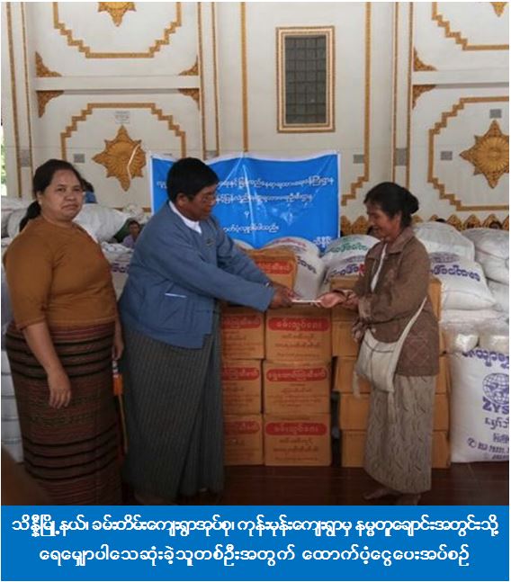 သိန္နီမြို့နယ်၊ ခမ်းတိမ်းကျေးရွာအုပ်စု၊ ကုန်းမုန်းကျေးရွာနေ ဦးဆန်လူ (ခ) ဦးအိုက်မောင် အသက် (၅၈) နှစ် (ဘ) ဦးစိန္တာ ကျေးရွာအုပ်ချုပ်ရေးမှူးသည် (၂၂-၇-၂၀၁၇) ရက်နေ့တွင် ဥယျာဉ်မှူးကျေးရွာအုပ်စု၊ ကွန်ခန်ကျေးရွာမှ နမ္မတူချောင်းအား ဖြတ်ကူး၍ ကုန်းမုန်းကျေးရွာသို့ ပြန်လာစဉ် နမ္မတူချောင်းအတွင်းသို့ ရေမျှောပါသေဆုံးခဲ့ပါသည်။ အဆိုပါသေဆုံးသူတစ်ဦးအတွက် သေဆုံးထောက်ပံ့ငွေ (၃၀၀၀၀၀) ကျပ်အား ကယ်ဆယ်ရေးနှင့် ပြန်လည်နေရာချထားရေးဦးစီးဌာန၊ လားရှိုးခရိုင်ဦးစီးမှူးရုံးမှ တာဝန်ရှိသူများသည် (၂၂-၇-၂၀၁၇) ရက်နေ့တွင် ထောက်ပံ့ငွေ ပေးအပ်ခဲ့ကြောင်း သိရှိရပါသည်။
