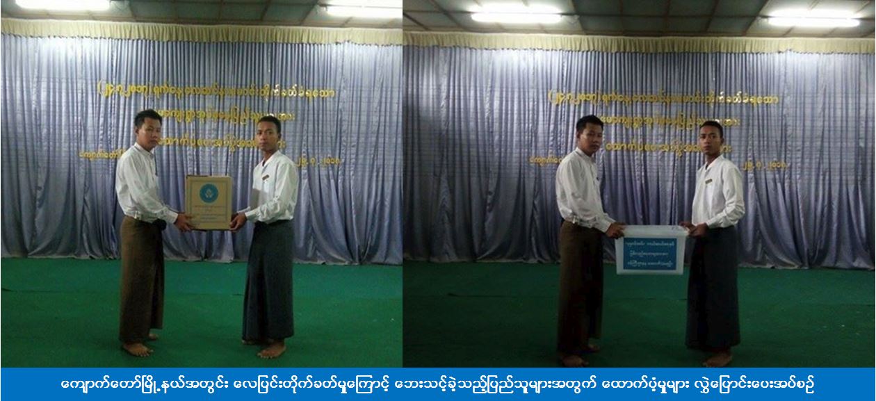 (၂၄-၇-၂၀၁၇) ရက်နေ့တွင် ကျောက်တော်မြို့နယ်အတွင်း ရုတ်တရတ်လေပြင်းတိုက်ခတ်မှုကြောင့် လူနေအိမ် လုံးဝပျက်စီး(သွပ်မိုး/ဝါးကာ) (၁၃) လုံး ၊ (သွပ်မိုး/ပျဉ်ကာ) (၄) လုံး၊ (ဓနိမိုး/ထရံကာ) (၁) လုံး စုစုပေါင်းလုံးဝပျက်စီးနေအိမ် (၁၈) လုံးနှင့် အမိုးလန်ပျက်စီး (သွပ်မိုး/ဝါးကာ) (၁၆) လုံး၊ (သွပ်မိုး/ပျဉ်ကာ) (၂) လုံး စုစုပေါင်းအမိုးလန်ပျက်စီး နေအိမ် (၁၈) လုံးအတွက် ကယ်ဆယ်ရေးပစ္စည်း (၁၀) မျိုး (၁၈) အိမ်ထောင်စာနှင့် ကယ်ဆယ်ရေးပစ္စည်း (၆) မျိုး (၁၈) အိမ်ထောင်စာတို့အား မြောက်ဦးခရိုင်ဦးစီးမှူးရုံး (ကဆရ) မှ တာဝန်ရှိသူများသည် (၂၅-၇-၂၀၁၇) ရက်နေ့တွင် ကျောက်တော်မြို့နယ်အထွေထွေအုပ်ချုပ်ရေးဦးစီးဌာနသို့ သွားရောက်လွှဲပြောင်းထောက်ပ့ံခဲ့ပြီးဖြစ်ကြောင်းနှင့် ဆန်ရိက္ခာဖိုးနှင့်အိမ်ဆောက်ပစ္စည်းဖိုးများအား ဆက်လက်ထောက်ပ့ံပေးသွားမည်ဖြစ်ပါကြောင်း သိရှိရပါသည်။