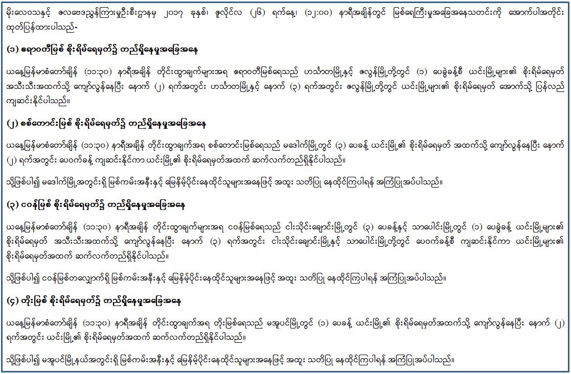 မိုးလေဝသနှင့် ဇလဗေဒညွှန်ကြားမှုဦးစီးဌာနမှ ၂၀၁၇ ခုနှစ်၊ ဇူလိုင်လ (၂၆) ရက်နေ့၊ (၁၂:၀၀) နာရီအချိန်တွင် မြစ်ရေကြီးမှုအခြေအနေသတင်းကို အောက်ပါအတိုင်း ထုတ်ပြန်ထားပါသည်-