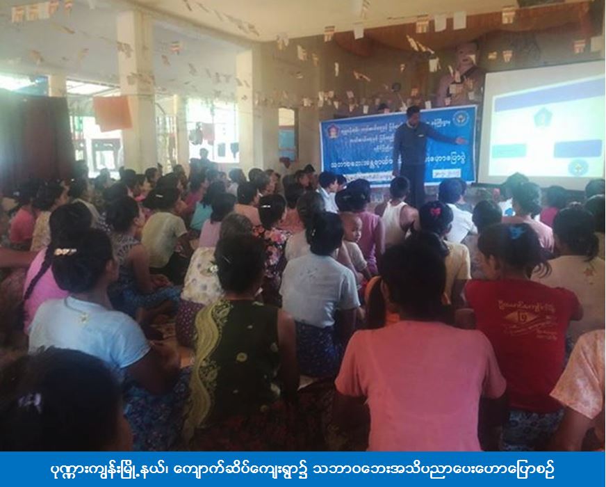 ရခိုင်ပြည်နယ်ဦးစီးမှူးရုံး (ကဆရ) မှ တာဝန်ရှိသူများသည် (၂၈-၇-၂၀၁၇) ရက်နေ့တွင် ပုဏ္ဏားကျွန်းမြို့နယ်၊ ကျောက်ဆိပ်ကျေးရွာ၌ ပြည်သူလူထုအင်အား (၂၀၀) ဦးအား ဘာဝဘေးအသိပညာပေးဟောပြောပွဲပြုလုပ်ခဲ့ပြီး တက်ရောက်လာကြသော ပြည်သူများထံ သဘာဝဘေးအသိပညာပေး လက်ကမ်းစာစောင်များနှင့် နံရံကပ်ပိုစတာများ ဖြန့်ဝေခဲ့ကြောင်း သိရှိရပါသည်။
