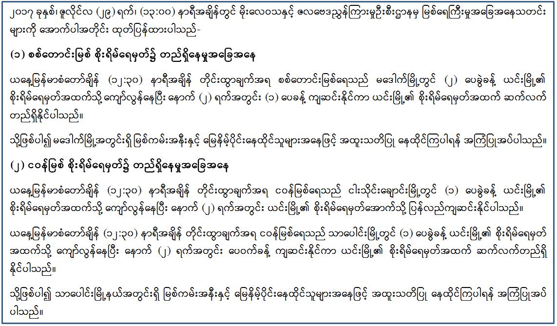 ၂၀၁၇ ခုနှစ်၊ ဇူလိုင်လ (၂၉) ရက်၊ (၁၃:၀၀) နာရီအချိန်တွင် မိုးလေဝသနှင့် ဇလဗေဒညွှန်ကြားမှုဦးစီးဌာနမှ မြစ်ရေကြီးမှုအခြေအနေသတင်း များကို အောက်ပါအတိုင်း ထုတ်ပြန်ထားပါသည်-