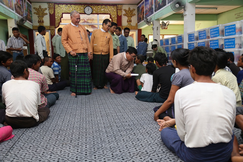 ဆက်လက်၍ ပြည်ထောင်စုဝန်ကြီးနှင့်အဖွဲ့သည် ပန်းတနော်မြို့ ရတနာသိင်္ဂီကျောင်းတိုက်သို့ ရောက်ရှိကြပြီး မြစ်ကမ်းပါးပြိုကျမှုကြောင့် နေအိမ်များပြောင်းရွှေ့ခဲ့ကြရသည့် မိသားစု (၁၂၅) စု၊ လူဦးရေ (၅၅၈) ဦးတို့ကို တွေ့ဆုံအားပေးစကားပြောကြားပြီး လတ်တလောစားသုံးရန်အတွက် ဆန်ရိက္ခာ (၁) ပတ်စာထောက်ပံ့ငွေ (၁၁၇၁၈၀၀) ကျပ်၊ တစ်အိမ်ထောင်လျှင် အိမ်ပြောင်းရွှွေ့စရိတ် (၁) သိန်းနှုန်းဖြင့် (၁၂၅) သိန်း၊ ကယ်ဆယ်ရေးပစ္စည်း (၁၀) မျိုးပါ (၁၂၅) ပုံးနှင့် နှာခေါင်းစည်း (၄၀၀) ခု၊ ဆပ်ပြာ (၂၀၀) ပိုင်း၊ ဖိုက်ဘာစက်တပ်လှေ (၃) စီးနှင့် အသက်ကယ်အကျီ င်္(၃၀) ထည်အတွက် (၆၉) သိန်းတို့ကို ထောက်ပံ့ပေးအပ်ခဲ့ပါသည်။