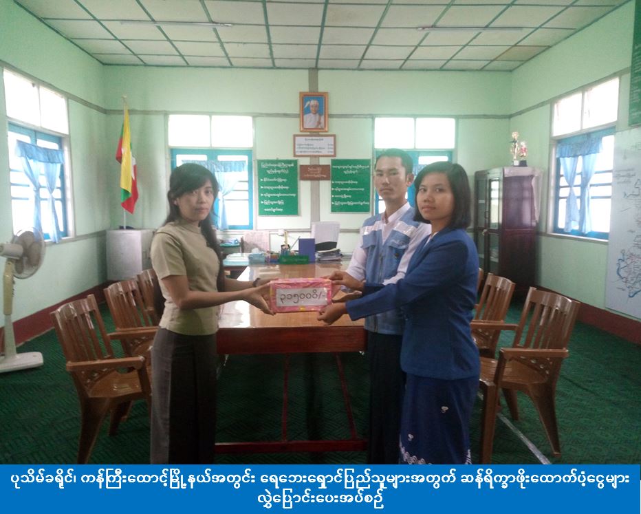ဧရာ၀တီတိုင်းဒေသကြီး၊ ပုသိမ်ခရိုင်၊ ကန်ကြီးထောင့်မြို့နယ်အတွင်း မြစ်ရေကြီးမြင့်မှုကြောင့် ကယ်ဆယ်ရေးစခန်းများသို့ (၂၇-၇-၂၀၁၇) ရက်နေ့တွင် အိမ်ခြေ (၃၄) လုံး၊ အိမ်ထောင်စု (၃၄) စုမှ လူဦးရေ (၁၅၀) ဦး ပြောင်းရွှေ့နေထိုင်ခဲ့ရာ အဆိုပါရေဘေးရှောင်ပြည်သူများအတွက် ဆန်ရိက္ခာ(၇)ရက်စာရန်ပုံငွေ (၃၁၅၀၀၀) ကျပ်အား (၂၈-၇-၂၀၁၇) ရက်နေ့တွင် ဧရာ၀တီတိုင်းဒေသကြီးဦးစီးမှူးရုံး (ကဆရ) မှ တာဝန်ရှိသူများသည် ကန်ကြီးထောင့်မြို့နယ် သဘာ၀ဘေးအန္တရာယ်ဆိုင်ရာစီမံခန့်ခွဲမှုအဖွဲ့ထံသို့ လွှဲပြောင်းထောက်ပံ့ပေးအပ်ခဲ့ကြောင်း သိရှိရပါသည်။