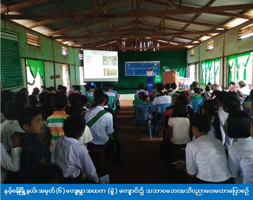 ကယ်ဆယ်ရေးနှင့် ပြန်လည်နေရာချထားရေးဦးစီးဌာန ရှမ်းပြည်နယ်ဦးစီးမှူးရုံးမှ တာဝန်ရှိသူများသည် (၂၉-၇-၂၀၁၇) ရက်နေ့၊ ညနေပိုင်းတွင် နမ့်စန်မြို့နယ်၊ အမှတ် (၆) ကျေးရွာ အထက (ခွဲ) ကျောင်း၌ သဘာဝဘေးအသိပညာပေးဟောပြောပွဲ ကျင်းပပြုလုပ်ခဲ့ပြီး သဘာဝဘေးအသိပညာပေးလက်ကမ်းစာစောင်များ ဖြန့်ဝေပေးခဲ့ပါသည်။ အဆိုပါဟောပြောပွဲသို့ အင်အား (၂၀၀) ခန့်တက်ရောက်ခဲ့ကြောင်း သိရှိရပါသည်။