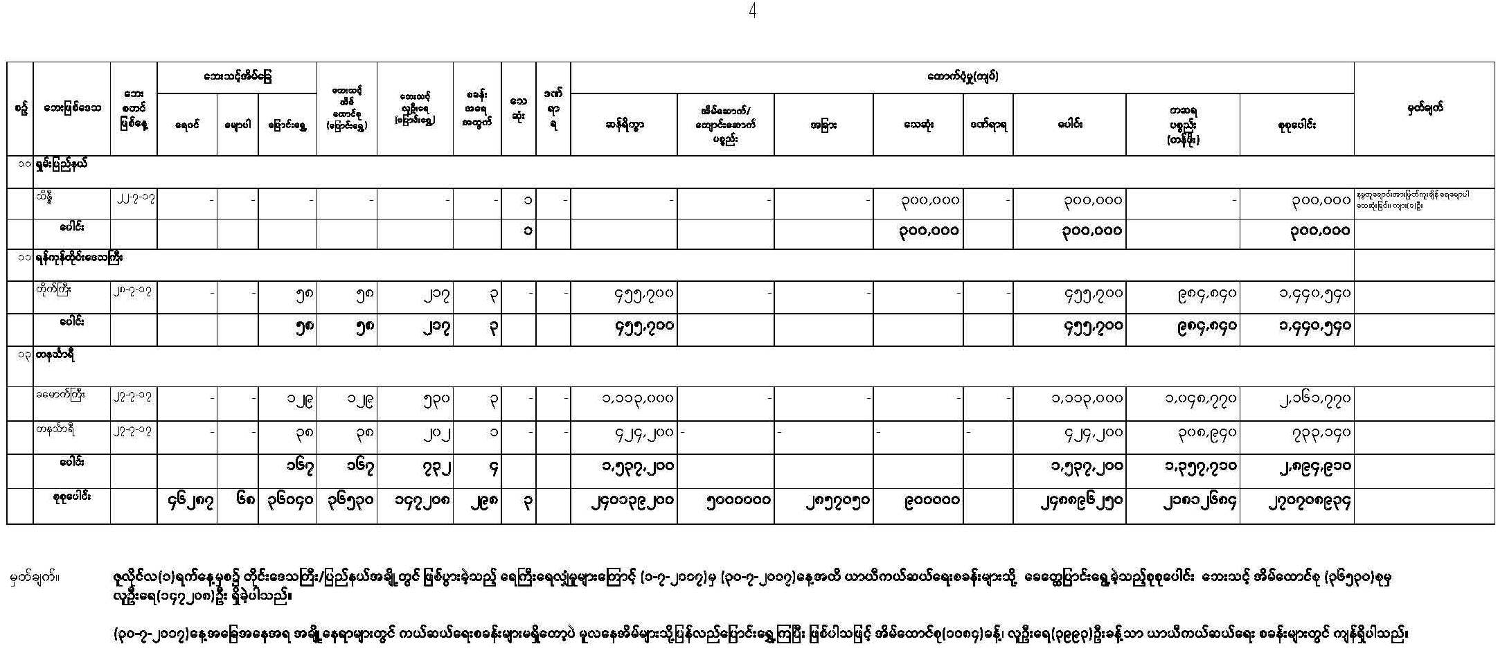 ၂၀၁၇ ခုနှစ်၊ ဇူလိုင်(၁)ရက်နေ့မှ (၃၀)ရက်နေ့အထိ တိုင်းဒေသကြီး/ပြည်နယ်များတွင် ရေဘေးဖြစ်ပွားမှုနှင့် လူမှုဝန်ထမ်း၊ ကယ်ဆယ်ရေးနှင့် ပြန်လည်နေရာချထားရေးဝန်ကြီးဌာနမှ ထောက်ပံ့မှုအခြေအနေ