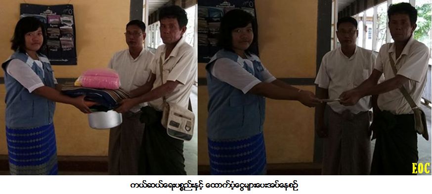 ကယ်ဆယ်ရေးနှင့်ပြန်လည်နေရာချထားရေးဦးဌာန၊ ပခုက္ကူခရိုင်ဦးစီးမှူးရုံးမှ တာဝန်ရှိသူများသည် ပခုက္ကူခရိုင်၊ ရေစကြို မြို့နယ်၊ ပခန်းငယ်ကျေးရွာအုပ်စု၊ ပခန်းငယ်ကျေးရွာ၌ (၉-၈-၂၀၁၇) ရက်နေ့တွင် ချင်းတွင်းမြစ်ရေတိုက်စား မှုကြောင့် ကမ်းပြိုမှု ဖြစ်ပွားခဲ့ရာ ကမ်းပြိုဘေးသင့် အိမ်ခြေ (၁) လုံး အိမ်ထောင်စု (၁) စု၊ လူဦးရေ (၄) ဦးအတွက် ဆန်ရိက္ခာ (၇) ရက်စာ (၈,၄၀၀) ကျပ်၊ ကယ်ဆယ်ရေးပစ္စည်း (၉) မျိုး ၊အိမ်ဆောက်ပစ္စည်းဖိုးငွေ (၁၀၀,၀၀၀)ကျပ်၊ စုစုပေါင်း (၁၀၈,၄၀၀) ကျပ်နှင့် ဆင်ခြေယာကျေးရွာ အုပ်စု၊ ဇရပ်နီကျေးရွာ၌ (၉-၈-၂၀၁၇) ရက်နေ့ ချင်းတွင်းမြစ်ရေ တိုက်စားမှုကြောင့် ကမ်းပြိုမှုဖြစ်ပွားခဲ့ရာ ကမ်းပြို ဘေးသင့်အိမ်ခြေ (၂) လုံး၊ အိမ်ထောင်စု (၂) စု၊ လူဦးရေ (၇) ဦးအတွက် ဆန်ရိက္ခာ (၇) ရက်စာ (၁၄,၇၀၀) ကျပ်၊ ကယ်ဆယ်ရေးပစ္စည်း (၉) မျိုး၊ အိမ်ဆောက်ပစ္စည်းဖိုးငွေ (၂၀၀,၀၀၀) ကျပ်၊ စုစုပေါင်း(၂၁၄,၇၀၀)ကျပ်တို့အား (၂၁-၈-၂၀၁၇) ရက်နေ့တွင် ကျေးရွာအုပ်ချုပ်ရေးမှူး များထံ၌ ဘေးသင့်ပြည်သူများ၏ လက်ဝယ်အရောက် ထောက်ပံ့ပေးအပ်ခဲ့ကြောင်း သတင်းရရှိပါသည်။