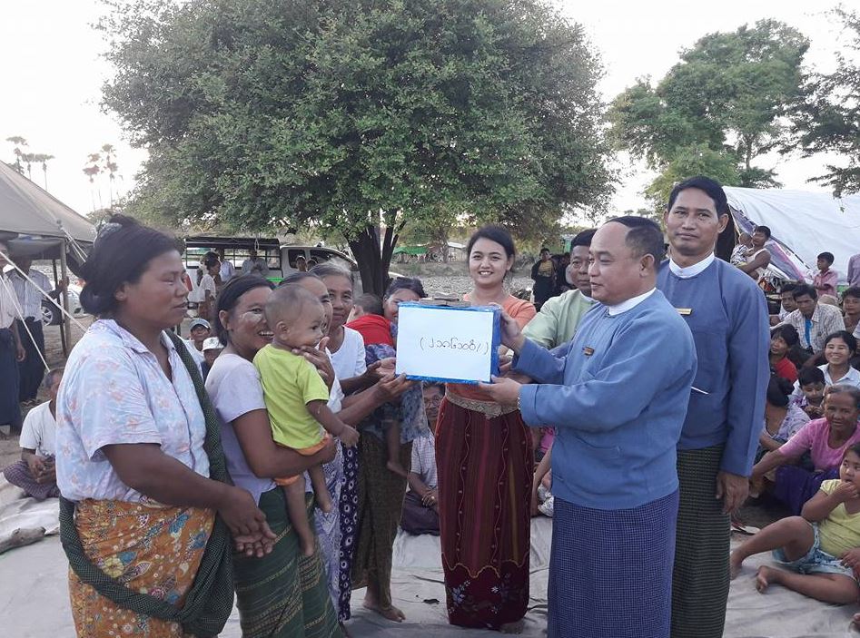 လူမှုဝန်ထမ်း၊ကယ်ဆယ်ရေးနှင့်ပြန်လည်နေရာချထားရေးဝန်ကြီးဌာန၊ ကယ်ဆယ်ရေးနှင့်ပြန်လည်နေ ရာချထားရေးဦးစီးဌာနမှ ဒုတိယညွှန်ကြားရေးမှူးချုပ် ဦးဝင်းထွဋ်ဦးနှင့် မကွေးတိုင်းဒေသကြီး ဦးစီးမှူး ဦးမြင့်စိုးတို့မှ ဧရာဝတီမြစ်ရေကြီးမှုကြောင့် ရေဘေးဒုက္ခခံစားကြရသော ဘေးသင့်ပြည်သူများ အတွက် (၂၃-၈-၂၀၁၇) ရက်နေ့တွင် ရေစကြိုမြို့နယ်၊ မြို့ပေါ်ရပ်ကွက်ရေဘေးခိုလှုံရေး စခန်း(၅)ခု ရှိ ရေဘေးသင့်ပြည်သူ (၂၁၇၇)ဦးအတွက် (၇)ရက်စာ ဆန်ရိက္ခာဖိုးငွေ(၄,၅၇၁,၇၀၀ိ/-)ကိုရေဘေး သင့်ပြည်သူများကိုယ်စား သက်ဆိုင်ရာမြို့နယ်အုပ်ချုပ်ရေးမှူးသို့ လွှဲပြောင်းထောက်ပံ့ပေးခဲ့ပါသည်။