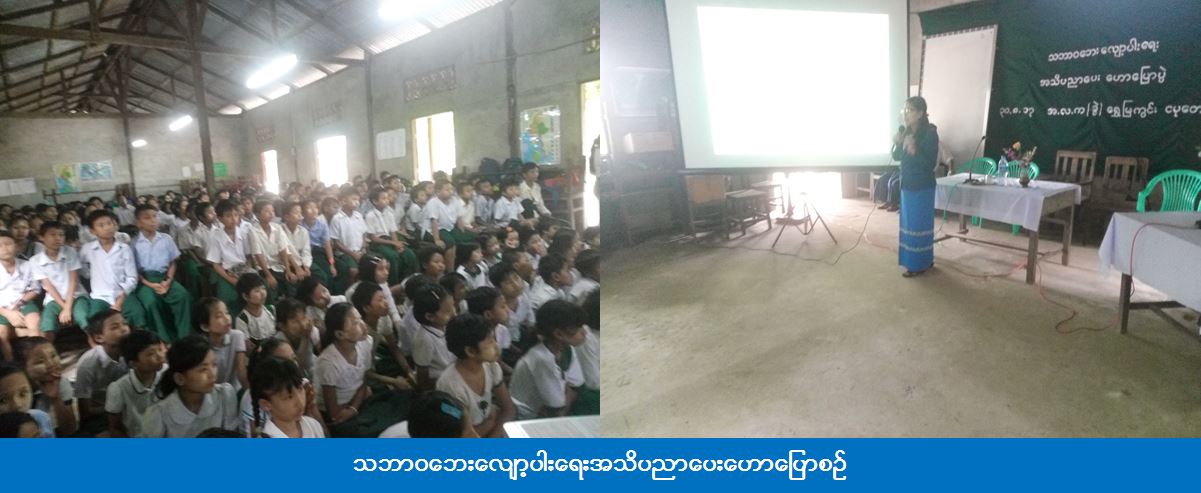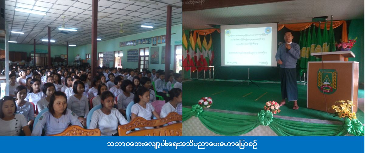 ကယ်ဆယ်ရေးနှင့် ပြန်လည်နေရာချထားရေးဦးစီးဌာန၊ ဧရာဝတီတိုင်းဒေသကြီးဦးစီးမှူးရုံးမှ တာဝန်ရှိသူများသည် (၃၀-၈-၂၀၁၇) ရက်နေ့တွင် ပုသိမ်ခရိုင်၊ ငပုတောမြို့နယ်၊ အခြေခံပညာအထက်တန်းကျောင်း (ငပုတောမြို့) နှင့် အခြေခံပညာအလယ်တန်းကျောင်း(ခွဲ) ရွှေမြကွင်းတို့၌ သဘာဝဘေးလျော့ပါးရေးအသိပညာပေးဟောပြောပွဲအား ကျင်းပပြုလုပ်ရာ စုစုပေါင်းကျောင်းသား၊ ကျောင်းသူ (၆၀၀) ဦး တက်ရောက်ခဲ့ကြပါသည်။ အဆိုပါဟောပြောပွဲသို့ တက်ရောက်သူများထံ လက်ကမ်းစာစောင်နှင့် နံရံကပ်ပိုစတာများ ဖြန့်ဝေပေးအပ်ခဲ့ကြောင်း သိရှိရပါသည်။