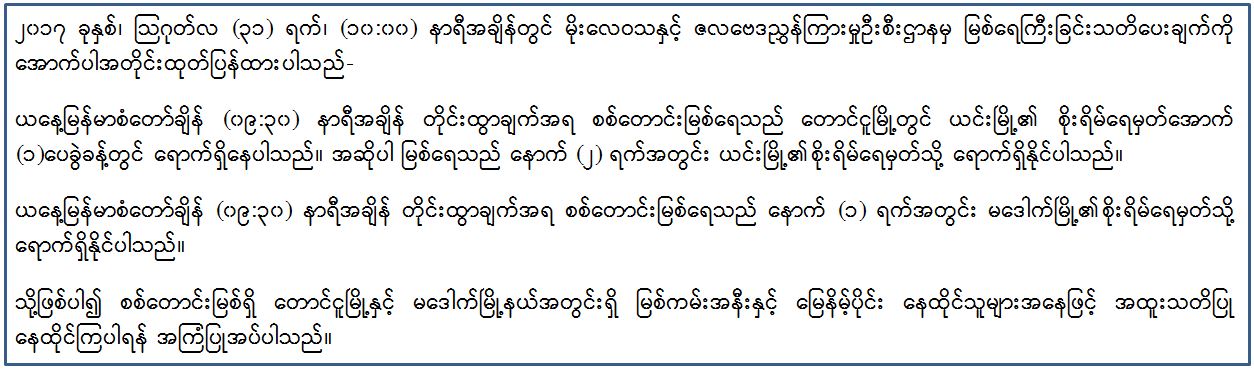 ၂၀၁၇ ခုနှစ်၊ သြဂုတ်လ (၃၁) ရက်၊ (၁၀:၀၀) နာရီအချိန်တွင် မိုးလေဝသနှင့် ဇလဗေဒညွှန်ကြားမှုဦးစီးဌာနမှ မြစ်ရေကြီးခြင်းသတိပေးချက်ကို အောက်ပါအတိုင်းထုတ်ပြန်ထားပါသည်-
