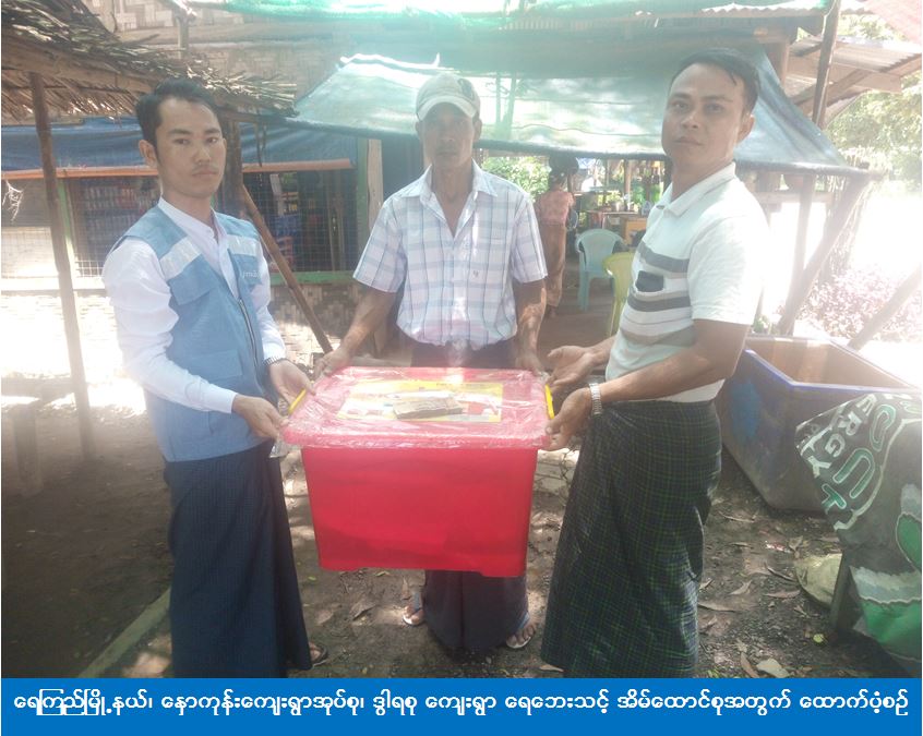 ဧရာဝတီတိုင်းဒေသကြီး၊ ပုသိမ််ခရိုင်၊ ရေကြည်မြို့နယ်၊ နှောကုန်းကျေးရွာအုပ်စု၊ ဒွါရစု ကျေးရွာ၌ (၂၉-၈-၂၀၁၇) ရက်နေ့တွင် ရေဝင်ရက်ကြာမြင့်၍ မြေနူးအိကာ ပြိုကျပျက်စီးခဲ့သည့် နေအိမ်(၁)လုံး၊ အိမ်ထောင်စု(၁)စုမှ လူဦးရေ(၅)ဦးအတွက် Family Kits (၂၂)မျိုး (၁)ပုံး၊ ဆန်ရိက္ခာ (၇)ရက်စာ (၁၀၅၀၀) ကျပ်၊ အိမ်ဆောက်ပစ္စည်းဖိုး (၁၀၀၀၀၀) ကျပ်၊ စုစုပေါင်းရန်ပုံငွေ (၁၁၀၅၀၀) ကျပ်အား (၁-၉-၂၀၁၇) ရက်နေ့တွင် ဧရာဝတီတိုင်းဒေသကြီးဦးစီးမှူးရုံး (ကဆရ) မှ တာဝန်ရှိသူများသည် ဘေးသင့်ပြည်သူများ လက်ဝယ်သို့အရောက် ကွင်းဆင်းထောက်ပံ့ပေးအပ်ခဲ့ကြောင်း သိရှိရပါသည်။