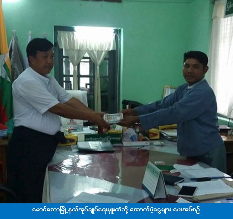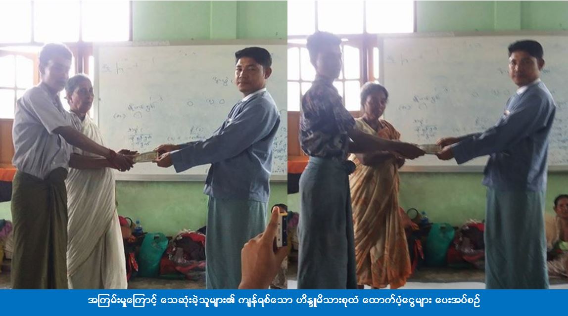 (၁-၉-၂၀၁၇) ရက်နေ့တွင် မောင်တောခရိုင်ဦးစီးမှူးရုံး (ကဆရ) မှ တာဝန်ရှိသူများသည် မောင်တောခရိုင်အတွင်း အကြမ်းဖက်မှုဖြစ်စဉ်ကြောင့် သတ်ဖြတ်ခြင်းခံရသည့် မြိုတိုင်းရင်းသား (၇) ဦး၊ ဒိုင်းနက်တိုင်းရင်းသာ (၅) ဦး၊ စုစုပေါင်း (၁၂) ဦးအတွက် ထောက်ပ့ံငွေ (၃၆) သိန်းအား မောင်တောမြို့နယ်အုပ်ချုပ်ရေးမှူးထံသို့လည်ကောင်း၊ ဟိန္ဒူ (၇) ဦးအတွက် ထောက်ပံ့ငွေ (၂၁) သိန်းအား သေဆုံးသူမိသားစုများထံသို့လည်းကောင်း သွားရောက်ထောက်ပံ့ပေးအပ်ခဲ့ကြောင်း သိရှိရပါသည်။