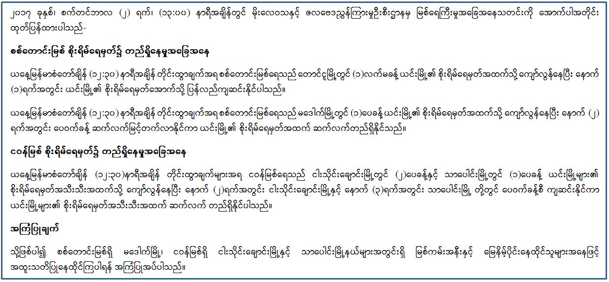 ၂၀၁၇ ခုနှစ်၊ စက်တင်ဘာလ (၂) ရက်၊ (၁၃:၀၀) နာရီအချိန်တွင် မိုးလေဝသနှင့် ဇလဗေဒညွှန်ကြားမှုဦးစီးဌာနမှ မြစ်ရေကြီးမှုအခြေအနေသတင်းကို အောက်ပါအတိုင်း ထုတ်ပြန်ထားပါသည်-