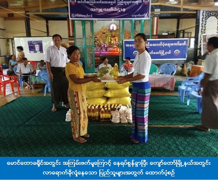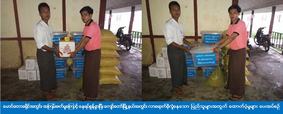မောင်တောခရိုင်အတွင်း အကြမ်းဖက်မှုကြောင့် နေရပ်စွန့်ခွာကာ ကျောက်တော်မြို့နယ် ခိုလှုံရာနေရာ(၇)ခု၌ လာရောက်ခိုလှုံနေသော အိမ်ထောင်စု (၁၀၉) စု၊ လူဦးရေ စုစုပေါင်း (၄၂၈) ဦးအတွက် ဆန်ရိက္ခာ(၃၁)အိတ် (၅)ပြည်၊ ဆီ(၅၄.၅)ပိဿာ၊ ဆား(၂၇.၂၅)ပိဿာ၊ ပဲ(၅၄.၅)ပိဿာနှင့် ကယ်ဆယ်ရေးပစ္စည်း(၁၀)မျိုး အိမ်ထောင်စု (၃၁) စုစာအား ကျောက်တော်မြို့ရှိ သာသနာ့ဗိမ္မာန် ကာဒီကျေးရွာဘုန်းတော်ကြီးကျောင်းနှင့် ကျောက်တော်မြို့နယ်အထွေထွေအုပ်ချုပ်ရေးဦးစီးဌာနသို့ မြောက်ဦးခရိုင်ဦးစီးမှူးရုံး (ကဆရ) မှ တာဝန်ရှိသူများသည် သွားရောက်လွှဲပြောင်းထောက်ပ့ံပေးခဲ့ကြောင်း သိရှိရပါသည်။