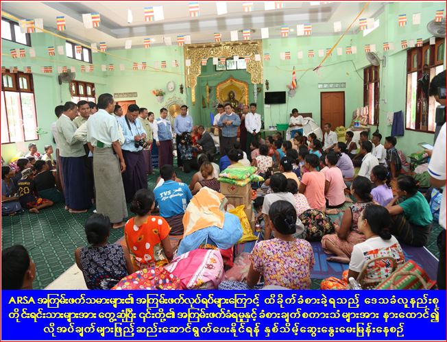 ၁၀။ ပြည်ထောင်စုဝန်ကြီး၊ ရခိုင်ပြည်နယ်ဝန်ကြီးချုပ်နှင့်အဖွဲ့သည် ဘူးသီးတောင်မြို့ပေါ် စုရပ်များသို့ နေရပ်စွန့်ခွာလာကြသော လူနည်းစုတိုင်းရင်းသားပြည်သူ (၂၃၂၉) ဦးအတွက် လတ်တလောအသုံးစရိတ် အဖြစ် ထောက်ပံ့ငွေ (၄,၆၅၈,၀၀၀/-)ကျပ်အား ထောက်ပံ့ပေးအပ်ခဲ့ပြီး (၁၀-၉-၂၀၁၇)ရက်နေ့ ညနေပိုင်းတွင် ပြည်ထောင်စုဝန်ကြီး၊ ရခိုင်ပြည်နယ်ဝန်ကြီးချုပ်နှင့်အဖွဲ့သည် စစ်တွေမြို့ မဏိရတနာကျောင်းတိုက်သို့ သွားရောက်၍ ကျောင်းထိုင်ဆရာတော်ထံမှ သြဝါဒခံယူခဲ့ပါသည်။ ထို့နောက် နေရပ်စွန့်ခွာ ပြောင်းရွှေ့နေထိုင်သူများအား တွေ့ဆုံ၍ အားပေးစကား ပြောကြားပြီး ကျောင်းတိုက်တွင် ခိုလှုံနေသော မိသားစုများအတွက် လူမှုဝန်ထမ်းဦးစီးဌာနမှ စိတ်လူမှုကူညီရေးလုပ်ငန်းနှင့် ကလေးများအတွက် ကလေးပျော်နေရာများ ဖန်တီးပေးခြင်းနှင့် ကလေးများ ကျန်းမာ ကြံ့ခိုင်စေရန် ဆောင်ရွက်ပေးနေမှုများအား ကြည့်ရှုအားပေးပါသည်။ ထို့ပြင် ကိုယ်ဝန်ဆောင်မိခင်များ၊ သက်ကြီးရွယ်အိုများ၊ မသန်စွမ်းများနှင့် အသက်(၂)နှစ်အောက် ကလေးများအား ထောက်ပံ့ခြင်းများ ဆောင်ရွက်ပေးခဲ့ပါသည်။ ကလေးများအတွက် ကစားစရာအရုပ်များနှင့်မုန့်များ ပေးအပ်ခဲ့ပါသည်။ ဆက်လက်၍ စစ်တွေမြို့ပေါ်ရှိ စုရပ် များတွင် ရောက်ရှိနေသော နေရပ်စွန့်ခွာလာကြသော တိုင်းရင်းသား (၅၃၆၅) ဦးအတွက် လတ်တလောအသုံးစရိတ်အဖြစ် ထောက်ပံ့ငွေ (၁၀,၇၃၀,၀၀၀)ကျပ်အား ထောက်ပံ့ ပေးအပ်ခဲ့ကြောင်း သတင်းရရှိပါသည်။
