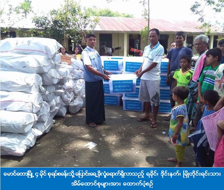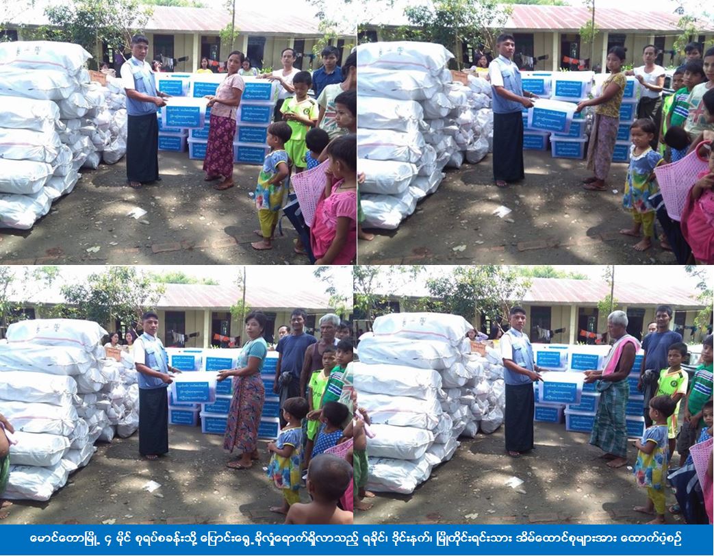 မောင်တောမြို့နယ်အတွင်း ARSA အကြမ်းဖက်မှုဖြစ်စဉ်ကြောင့် မောင်တောမြို့ ၄ မိုင် စုရပ်စခန်းသို့ ပြောင်းရွေ့ခိုလှုံရောက်ရှိလာသည့် ရခိုင်၊ ဒိုင်းနက်၊ မြိုတိုင်းရင်းသား အိမ်ထောင်စု (၂၁၁) စုအား မောင်တောခရိုင်ဦးစီးမှူးရုံး (ကဆရ) မှ ကယ်ဆယ်ရေးပစ္စည်း (၁၀) မျိုး အိမ်ထောင်စု (၂၁၁) စုစာအား (၁၁-၉-၂၀၁၇) ရက်နေ့တွင် သွားရောက်ထောက်ပံ့ပေးခဲ့ကြောင်း သိရှိရပါသည်။