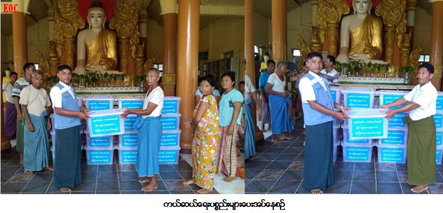 ကယ်ဆယ်ရေးနှင့် ပြန်လည်နေရာချထားရေးဦးစီးဌာန၊ မောင်တောခရိုင်ဦးစီးမှူးရုံးမှ တာဝန်ရှိသူများသည် မောင်တော မြို့နယ်အတွင်း (ARSA) အကြမ်းဖက်မှုဖြစ်စဉ်ကြောင့် မောင်တောမြို့ (၄) မိုင်စုရပ်စခန်းသို့ ပြောင်းရွှေ့ခိုလှုံ ရောက်ရှိလာသည့် ရခိုင် ဒိုင်းနက် မြိုတိုင်းရင်းသား အိမ်ထောင်စု (၂၁၁) စုအတွက် ကယ်ဆယ်ရေး (၁၀) မျိုး (၂၁၁) အိမ်ထောင်စုစာအားလည်းကောင်း၊ မောင်တောမြို့၊ မြို့မ ဘုန်းတော်ကြီးကျောင်းစုရပ်သို့ ခိုလှုံရန်ရောက်ရှိ လာသည့် နံသာတောင်ကျေးရွာမှ အိမ်ထောင်စု (၄၂) စုအတွက် ကယ်ဆယ်ရေးပစ္စည်း (၁၀) မျိုး အိမ်ထောင်စု (၄၂) စုစာတို့အား (၁၁-၉-၂၀၁၇) ရက်နေ့တွင် သွားရောက်ထောက်ပံ့ပေးအပ်ခဲ့ကြောင်း သတင်းရရှိပါသည်။