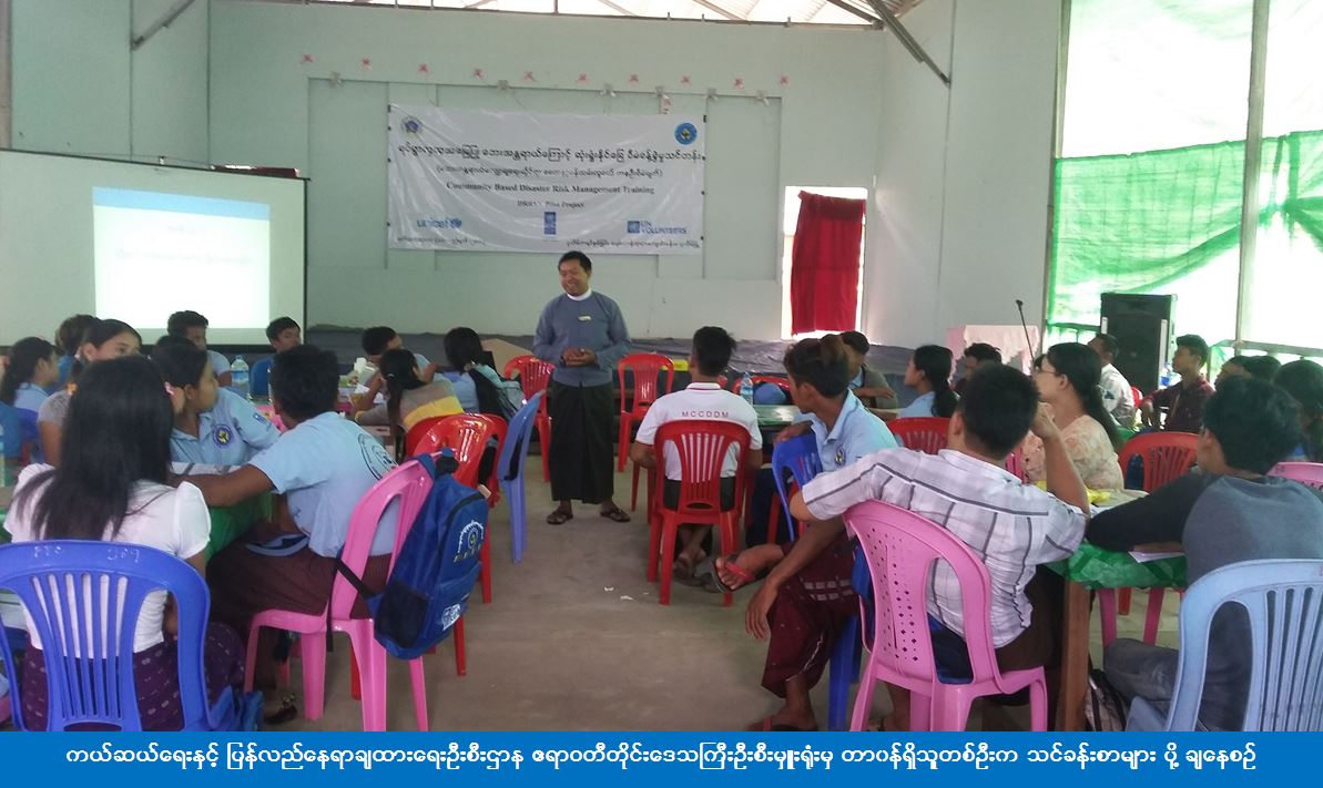 (၁၁-၉-၂၀၁၇) ရက်နေ့ (၀၉းဝဝ) နာရီအချိန်တွင် ကယ်ဆယ်ရေးနှင့် ပြန်လည်နေရာချထားရေးဦးစီးဌာန၊ ဧရာဝတီတိုင်းဒေသကြီးဦးစီးမှူးရုံးနှင့် UN Volunteers တို့ပူးပေါင်း၍ ပုသိမ်မြို့နယ်အတွင်းရှိ စေတနာ့ဝန်ထမ်းလူငယ်များအတွက် ပုသိမ်မြို့၊ ဘိုကနောင်လမ်းရှိ ကရင်နှစ်ချင်းခရစ်ယာန်ဘုန်းကြီးကျောင်း၌ “ရပ်ရွာလူထုအခြေပြု ဘေးအန္တရာယ်ကြောင့် ထိခိုက်ဆုံးရှုံးနိုင်ခြေလျော့ပါးရေးသင်တန်း” အား ဖွင့်လှစ်ခဲ့ရာ အခမ်းအနားသို့ ပုသိမ်မြို့နယ်တိုင်းဒေသကြီး လွှတ်တော်ကိုယ်စားလှယ် ဒေါက်တာစိုးဝင်း၊ ကယ်ဆယ်ရေးနှင့် ပြန်လည်နေရာချထားရေးဦးစီးဌာန ဧရာဝတီတိုင်းဒေသကြီးဦးစီးမှူး၊ ပုသိမ်မြို့နယ်အုပ်ချုပ်ရေးမှူး၊ မြို့နယ်သဘာဝဘေးအန္တရာယ်ဆိုင်ရာ စီမံခန့်ခွဲမှုအဖွဲ့မှ အဖွဲ့ဝင်များ၊ UN စေတနာ့ဝန်ထမ်းလူငယ်များ၊ စုစုပေါင်း အင်အား (၇၀) ဦး တက်ရောက်ခဲ့ပါသည်။ အဆိုပါသင်တန်းသည် (၁၁-၉-၂၀၁၇) ရက်နေ့မှ (၁၅-၉-၂၀၁၇) ရက်နေ့အထိ ဖွင့်လှစ်မည်ဖြစ်ကြောင်း သိရှိရပါသည်။