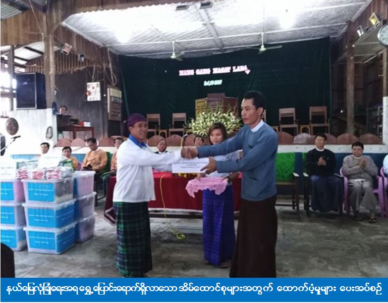 (၁၁-၉-၂၀၁၇) ရက်နေ့တွင် မိုးညှင်းမြို့နယ်၊ နန့်မွန်းကျေးရွာ နှစ်ခြင်းဘုရားကျောင်း၌ နယ်မြေလုံခြုံရေးအရ ရွှေ့ပြောင်းရောက်ရှိလာသော IDPs အိမ်ထောင်စု(၂၀)စု၊ လူဦးရေ(၁၀၅)ဦးတို့အား ကချင်ပြည်နယ်နယ်ဝန်ကြီးချုပ်ခရီးစဉ်တွင် ကယ်ဆယ်ရေးနှင့် ပြန်လည်နေရာချထားရေးဦးစီးဌာန ကချင်ပြည်နယ်ဦးစီးမှူး ဦးဝင်းဇော်ဌေး မှ ကယ်ဆယ်ပစ္စည်း(၉)မျိုး (၂၀)အိမ်ထောင်စာနှင့် ဆန်ရိက္ခာဖိုး(၇)ရက်စာ လူဦးရေ (၁၀၅) ဦးအတွက် ဆန်ရိက္ခာဖိုးငွေ(၂၂၀၅၀၀)ကျပ်အား သွားရောက်ထောက်ပံ့ခဲ့ကြောင်း သိရှိရပါသည်။