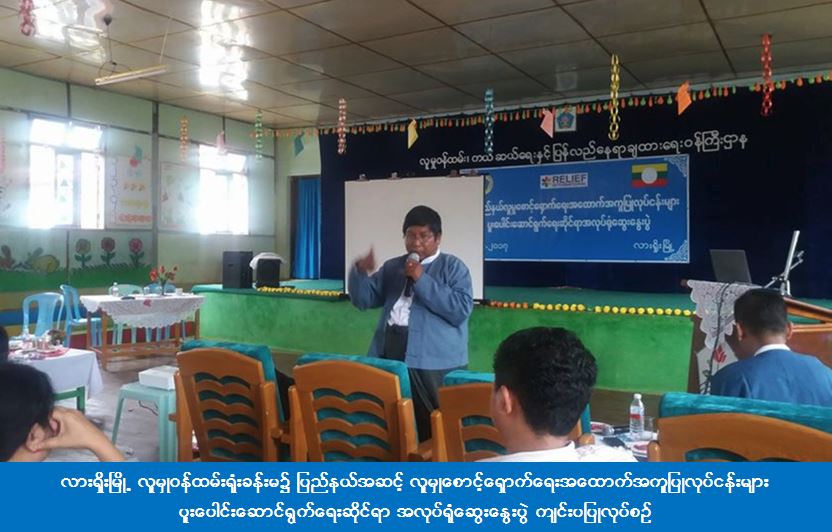 ရှမ်းပြည်နယ်အစိုးရအဖွဲ့၏ပ့ံပိုးလမ်းညွှန်မှုဖြင့် ရှမ်းပြည်နယ်လူမှုဝန်ထမ်းဦးစီးဌာန၊ ရှမ်းပြည်နယ်ကယ်ဆယ်ရေးနှင့်ပြန်လည်နေရာချထားရေးဦးစီးဌာနနှင့် Relief International တို့ပူးပေါင်းဆောင်ရွက်သော ပြည်နယ်အဆင့် လူမှုစောင့်ရှောက်ရေးအထောက်အကူပြုလုပ်ငန်းများ ပူးပေါင်းဆောင်ရွက်ရေးဆိုင်ရာ အလုပ်ရုံဆွေးနွေးပွဲကို လားရှိုးမြို့ လူမှုဝန်ထမ်းရုံးခန်းမ၌ (၁၂-၉-၂၀၁၇) ရက်နေ့တွင် ကျင်းပပြုလုပ်ခဲ့ရာ ဗမာတိုင်းရင်းသားရေးရာဝန်ကြီးကိုယ်စား ပြည်နယ်ဒုတိယအုပ်ချုပ်ရေးမှူးက အဖွင့်အမှာစကားပြောကြားခြင်း၊ လူမှု/ကယ်ဆယ်မှ တာဝန်ရှိသူများက လူမှုစောင့်ရှောက်ရေးနှင့် သဘာဝလျော့ပါးရေးလုပ်ငန်းစဉ်များအား ဦးဆောင်ဆွေးနွေးခြင်း၊ တက်ရောက်လာသော ဌာနဆိုင်ရာများ UN၊ INGOs၊ NGOs၊ CSO အဖွဲ့အစည်းများမှ အပြန်အလှန်သုံးသပ်ဆွေးနွေးခြင်းများ ဆောင်ရွက်ခဲ့ပါသည်။ အဆိုပါအလုပ်ရုံဆွေးနွေးပွဲသို့ အင်အား (၉၀) ဦးတက်ရောက်ခဲ့ကြောင်း သိရှိရပါသည်။