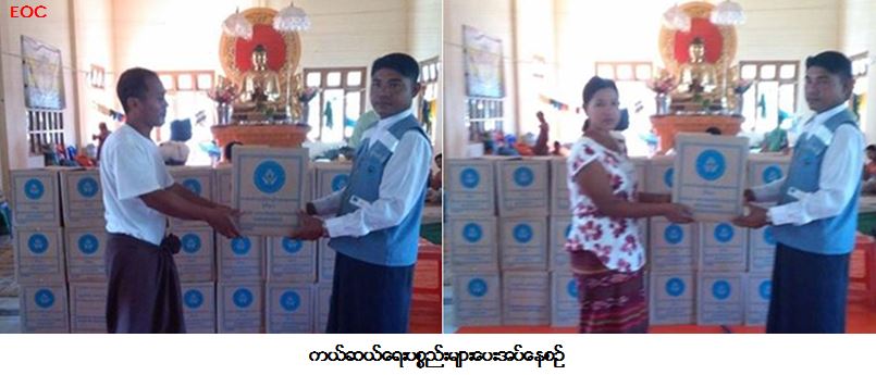 ကယ်ဆယ်ရေးနှင့် ပြန်လည်နေရာချထားရေးဦးစီးဌာန၊မောင်တောခရိုင်ဦးစီးမှူးရုံးမှ တာဝန်ရှိသူများသည် ARSA အကြမ်းဖက်ဖြစ် စဉ်ကြောင့် မောင်တောမြို့၊ သာသနာ့ဗိမာန်စုရပ်သို့ ထပ်မံခိုလှုံရန်ရောက်ရှိလာသည့် မောင်တော မြို့နယ်ကျေးရွာများမှ အိမ်ထောင်စု (၅၁) စုအတွက် ကဆရပစ္စည်း (၉) မျိုး အိမ်ထောင်စု (၅၁) စုစာတို့အား (၁၅-၉-၂၀၁၇) ရက်နေ့တွင် ထောက်ပံ့ပေးအပ်ခဲ့ကြောင်း သတင်းရရှိပါသည်။