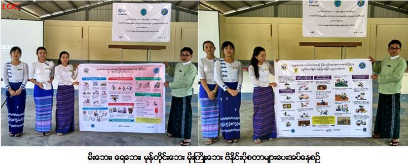 ကယ်ဆယ်ရေးနှင့် ပြန်လည်နေရာချထားရေးဦးစီးဌာန၊ ကရင်ပြည်နယ်ဦးစီးမှူးရုံးမှ တာဝန်ရှိသူများသည် လူသရမ်ဝေါလ် ဖယ်ဒရေးရှင်းမြန်မာ (LWF) အဖွဲ့နှင့်ပူးပေါင်း၍ (၁၃-၉-၂၀၁၇) ရက်နေ့မှ (၁၄-၉-၂၀၁၇) ရက်နေ့ထိ သဘာဝဘေး အန္တရာယ်စီမံခန့်ခွဲမှုအခြေခံ (ဆင့်ပွား) သင်တန်းကို ဖာပွန်မြို့နယ်အတွင်းရှိ ကျေးရွာ (၆) ရွာမှ တစ်ရွာလျှင် (၄) ဦးနှုန်းဖြင့် သင်တန်းသား/သူ (၂၄) ဦးဖြင့် (၂) ရက်ကြာဖွင့် လှစ်ခဲ့ပါသည်။ အဆိုပါ သင်တန်းတွင် ကရင်ပြည်နယ်ဦးစီးမှူးရုံး တာဝန်ရှိသူများမှ မီးဘေး၊ ရေဘေး၊ မုန်တိုင်းဘေး မိုးကြိုးဘေး လက်ကမ်းစာစောင်များနှင့် ဗီနိုင်းပိုစတာများအား ဖာပွန်မြို့ အထွေထွေအုပ်ချုပ်ရေးဦးစီးဌာနမှ မြို့နယ်အုပ်ချုပ်ရေးမှူးထံသို့ လွှဲပြောင်းပေးအပ်ခဲ့ပါကြောင်း သတင်းရရှိပါ သည်။
