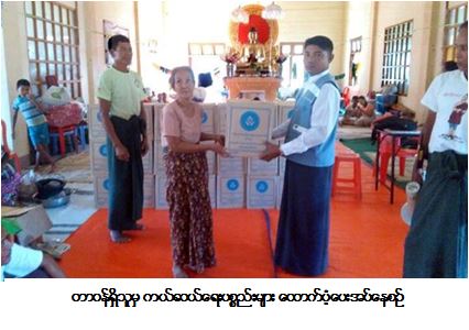 ကယ်ဆယ်ရေးနှင့် ပြန်လည်နေရာချထားရေးဦးစီးဌာန၊ မောင်တောခရိုင်ဦးစီးမှူးရုံးမှ တာဝန်ရှိသူများသည် ARSA အကြမ်းဖက်ဖြစ်စဉ်ကြောင့် မောင်တောမြို့၊ သာသနာ့ဗိမာန်စုရပ်သို့ ထပ်မံခိုလှုံရန်ရောက်ရှိလာသည့် မောင်တောမြို့နယ်ကျေးရွာများမှ အိမ်ထောင်စု (၅၁) စုအတွက် ကဆရပစ္စည်း (၉) မျိုး၊ (၅၁) အိမ်ထောင်စာတို့အား (၁၅-၉-၂၀၁၇) ရက်နေ့တွင် ထောက်ပံ့ပေးအပ်ခဲ့ကြောင်း သတင်းရရှိပါသည်။