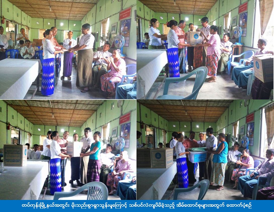 တပ်ကုန်းမြို့နယ်၊ ဗိုလ်မင်းရောင်ရပ်ကွက်၊ နယ်မြေ (၉) ၌ (၁၆-၉-၂၀၁၇) ရက်နေ့တွင် မိုးသည်းထန်စွာရွာသွန်းမှုကြောင့် သစ်ပင်လဲကျပိမိကာ ပြိုလဲခဲ့သည့် နေအိမ် (၁) လုံးမှ အိမ်ထောင်စု (၁) စုအတွက် ကယ်ဆယ်ရေးပစ္စည်း (၁၆) မျိုးနှင့် အိမ်ဆောက်ပစ္စည်းဖိုးနှင့် ဆန်ရိက္ခာဖိုး (၂၀၄၂၀၀) ကျပ်၊ တစ်စိတ်တစ်ပိုင်းပျက်စီးခဲ့သည့် အိမ်ထောင်စု (၂) စုစာအတွက် ကယ်ဆယ်ရေးပစ္စည်း (၁၀) မျိုး (၂) အိမ်ထောင်စာနှင့် အိမ်ဆောက်ပစ္စည်းဖိုးနှင့် ဆန်ရိက္ခာဖိုး (၂၁၈၉၀၀) ကျပ်တို့ကို (၁၇-၉-၂၀၁၇) ရက်နေ့တွင် ပြည်ထောင်စုနယ်မြေ၊ နေပြည်တော်တိုင်းဦးစီးမှူးရုံး (ကဆရ) မှ တာဝန်ရှိသူများသည် သွားရောက်ထောက်ပံ့ခဲ့ကြောင်း သိရှိရပါသည်။