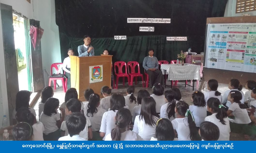(၁၄-၉-၂၀၁၇) ရက်နေ့တွင် ကော့သောင်းခရိုင်ဦးစီးမှူးရုံး (ကဆရ) မှ တာဝန်ရှိသူများသည် ကော့သောင်းမြို့၊ ရွှေပြည်သာရပ်ကွက် အထက (ခွဲ) ၌ သဘာဝဘေးအသိပညာပေးဟောပြောပွဲ ကျင်းပပြုလုပ်ရာ ဟောပြောပွဲသို့ (၂၁၀) ဦး တက်ရောက်ခဲ့ကြောင်း သိရှိရပါသည်။