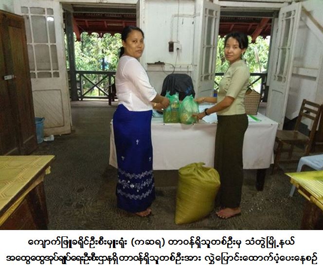 ကျောက်ဖြူခရိုင်ဦးစီးမှူးရုံး (ကဆရ) မှတာဝန်ရှိသူများသည် သံတွဲခရိုင်၊ သံတွဲမြို့နယ် ခမောင်းတုန်းကျေးရွာအုပ်စု၊ ဒေါ်မြကျေးရွာသို့ ရောက်ရှိ ခိုလှုံနေသည့် နေရပ်စွန့်ခွါအိမ်ထောင်စု (၃) စု၊ လူဦးရေ (၁၀) ဦး အတွက် ဆန် (၁၇) ပြည် (၄) ဗူး၊ ဆီ (၁) ပိဿာ (၅၀) ကျပ်သား ပဲ (၁) ပိဿာ (၅၀) သားနှင့် ဆား (၇၅) ကျပ်သားတို့ကို (၁၉-၉-၂၀၁၇) ရက်နေ့တွင် သံတွဲမြို့နယ် အထွေထွေအုပ်ချုပ်ရေးဦးစီးဌာနသို့ လွှဲပြောင်းထောက်ပံ့ပေး ခဲ့ကြောင်း သတင်းရရှိပါသည်။