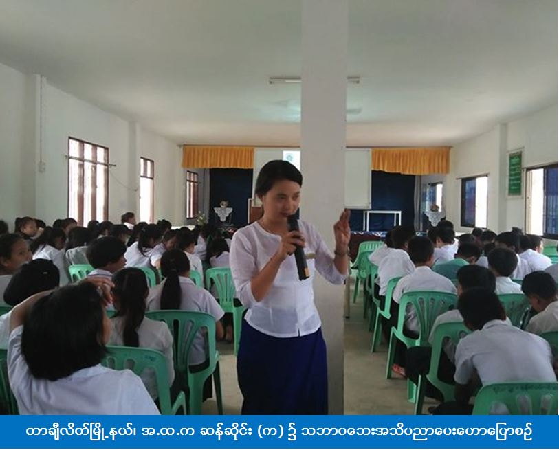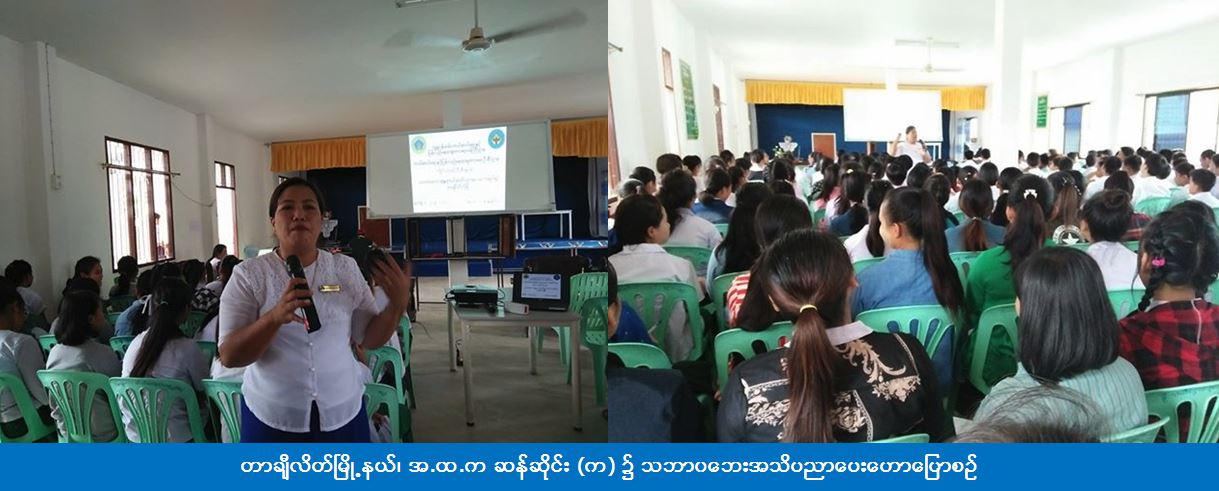 ကယ်ဆယ်ရေးနှင့် ပြန်လည်နေရာချထားရေးဦးစီးဌာန ကျိုင်းတုံခရိုင်ဦးစီးမှူးရုံးမှ တာဝန်ရှိသူများသည် (၂၁-၉-၂၀၁၇) ရက်နေ့၊ (၁၃းဝဝ) နာရီအချိန်တွင် တာချီလိတ်မြို့နယ်၊ အ.ထ.က ဆန်ဆိုင်း (က) ၌ သဘာဝဘေးအသိပညာပေးဟောပြောပွဲ ကျင်းပပြုလုပ်ရာ ဟောပြာပွဲ၌ ကျိုင်းတုံခရိုင်ဦးစီးမှူးရုံး (ကဆရ) မှ တာဝန်ရှိသူများက မြန််မာနိုင်ငံတွင် ဖြစ်ပေါ်နေသည့် သဘာဝဘေးအန္တရာယ်များအကြောင်း သဘာဝဘေးအန္တရာယ်ဖြစ်ပွားလာပါက ဆောင်ရန်ရှောင်ရန်များနှင့် ဦးစီးဌာန၏လုပ်ငန်းတာဝန်များရည်ရွယ်ချက်များကို ရှင်းလင်းပြောကြားပြီး သရုပ်ပြလေ့ကျင့်ခြင်းနှင့် လက်ကမ်းစာစောင်များဖြန့်ဝေခြင်းများ ဆောင်ရွက်ခဲ့ပါသည်။ အဆိုပါဟောပြောပွဲသို့ လူဦးရေ (၃၀၀) ဦးတက်ရောက်ခဲ့ကြောင်း သိရှိရပါသည်။