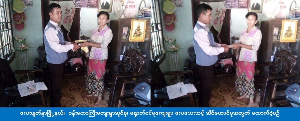 လေးမျက်နှာမြို့နယ်၊ ပန်းတောကြီးကျေးရွာအုပ်စု၊ ရှောက်ပင်စုကျေးရွာ၌ (၁၇-၉-၂၀၁၇) ရက်နေ့တွင် လေပြင်းတိုက်ခတ်မှုကြောင့် တစ်စိတ်တစ်ပိုင်းပျက်စီးခဲ့သည့် လူနေအိမ် (၁) လုံး (ဆုံးရှုံးမှုတန်ဖိုး ရ၀၀၀၀ကျပ်)၊ အိမ်ထောင်စု (၁) စု၊ ဘေးသင့်လူဦးရေ (၆) ဦးတို့အတွက် ကယ်ဆယ်ရေးပစ္စည်း (၄) မျိုး (၁) အိမ်ထောင်စာ၊ အိမ်ဆောက်ပစ္စည်းဖိုး (၇၀၀၀၀) ကျပ်၊ ဆန်ရိက္ခာဖိုး (၁၂၆၀၀) ကျပ်၊ စုစုပေါင်းကယ်ဆယ်ရေးရန်ပုံငွေ (၈၂၆၀၀) ကျပ်တို့ကို ဟင်္သာတခရိုင်ဦးစီးမှူးရုံး (ကယ်ဆယ်ရေး) မှတာဝန်ရှိသူများသည် (၂၂ -၉-၂၀၁၇) ရက်နေ့တွင် ဘေးသင့်ပြည်သူများလက်ဝယ်သို့ ကွင်းဆင်းထောက်ပံ့ခဲ့ကြောင်း သိရှိရပါသည်။