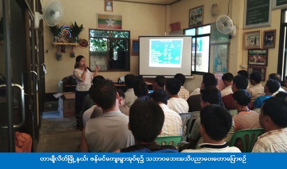 ကယ်ဆယ်ရေးနှင့် ပြန်လည်နေရာချထားရေးဦးစီးဌာန၊ ကျိုင်းတုံခရိုင်ဦးစီးမှူးရုံးမှ တာဝန်ရှိသူများသည် (၂၂-၉-၂၀၁၇) ရက်နေ့၊ (၁၃းဝဝ) နာရီအချိန်တွင် တာချီလိတ်မြို့နယ်၊ ဖန်မင်ကျေးရွာအုပ်စု၌ သဘာဝဘေးအသိပညာပေးဟောပြောပွဲကျင်းပပြုလုပ်ရာ တာဝန်ရှိသူများက မြန််မာနိုင်ငံတွင် ဖြစ်ပေါ်နေသည့်သဘာဝဘေးအန္တရာယ်များအကြောင်း၊ သဘာဝဘေးအန္တရာယ်ဖြစ်ပွားလာပါက ဆောင်ရန်၊ ရှောင်ရန်များ၊ ဦးစီးဌာန၏လုပ်ငန်းတာဝန်များ၊ ရည်ရွယ်ချက်များကို ရှင်းလင်းပြောကြားပြီး သရုပ်ပြလေ့ကျင့်ခြင်းနှင့် လက်ကမ်းစာစောင်များဖြန့်ဝေခြင်းများ ဆောင်ရွက်ခဲ့ကြပါသည်။ အဆိုပါဟောပြောပွဲသို့ တက်ရောက်သူ (၁၂၀) ဦးရှိကြောင်း သိရှိရပါသည်။