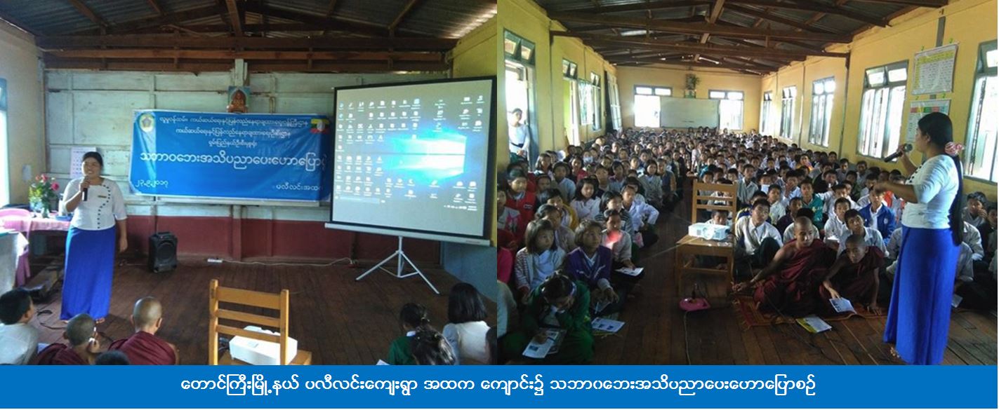 ကယ်ဆယ်ရေးနှင့် ပြန်လည်နေရာချထားရေးဦးစီးဌာန၊ ရှမ်းပြည်နယ်ဦးစီးမှူးရုံးမှ တာဝန်ရှိသူများသည် (၂၃-၉-၂၀၁၇) ရက်နေ့၊ နံနက်ပိုင်းတွင် တောင်ကြီးမြို့နယ် ပလီလင်းကျေးရွာ အထက ကျောင်း၌ သဘာဝဘေးအသိပညာပေးဟောပြောပွဲ ကျင်းပပြုလုပ်ခဲ့ရာ အဆိုပါဟောပြောပွဲသို့ တက်ရောက်သူ (၄၀၀) ဦးရှိခဲ့ပြီး တက်ရောက်သူများထံ လက်ကမ်းစာစောင်များ ဖြန့်ဝေပေးခဲ့ကြောင်း သိရှိရပါသည်။