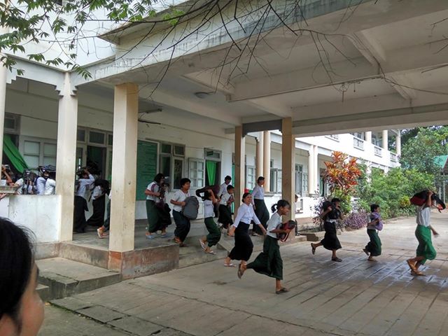 (၂၃-၉-၂၀၁၇) ရက်နေ့၊ နံနက် (၁၀းဝဝ~၁၂းဝဝ) နာရီအချိန်တွင် ကယ်ဆယ်ရေးနှင့် ပြန်လည်နေရာချထားရေးဦးစီးဌာန၊ ပြည်ထောင်စုနယ်မြေ၊ နေပြည်တော်တိုင်းဦးမှူးရုံးမှ ဒုတိယညွှန်ကြားရေးမှူးဒေါ်ဝင်းစန္ဒာကြည်နှင့်အဖွဲ့သည် သပြေကုန်း အ.ထ.က(ခွဲ)၊ အ.လ.က(၃) ၌ ကျောင်းသား၊ ကျောင်းသူ (၃၀၀) ပါဝင်သော “ငလျင်ဘေးအန္တရာယ်ဇာတ်တိုက်လေ့ကျင့်ခန်း” ပြုလုပ်ခဲ့ရာ ကယ်ဆယ်ရေးနှင့် ပြန်လည်နေရာချထားရေးဦးစီးဌာနမှ ညွှန်ကြားရေးမှူးချုပ် ဒေါက်တာကိုကိုနိုင်၊ လူမှုဝန်ထမ်းဦးစီးဌာန၊ ကယ်ဆယ်ရေးနှင့် ပြန်လည်နေရာချထားရေးဦးစီးဌာန၊ အခြေခံပညာဦးစီးဌာန၊ ပြည်သူ့ကျန်းမာရေးဦးစီးဌာန၊ ဇမ္ဗူသီရိမြို့နယ်အထွေထွေအုပ်ချုပ်ရေးဦးစီးဌာန၊ နေပြည်တော်မီးသတ်ဦးစီးဌာန၊ နေပြည်တော်တိုင်းကြက်ခြေနီကြီးကြပ်မှုကော်မတီတို့မှ အရာထမ်း၊ အမှုထမ်းများ တက်ရောက်ပြီး ငလျင်ဇာတ်တိုက်လေ့ကျင့်ခန်းအား ပူးပေါင်းပါဝင်ဆောင်ရွက်ခဲ့ကြကြောင်း သိရှိရပါသည်။